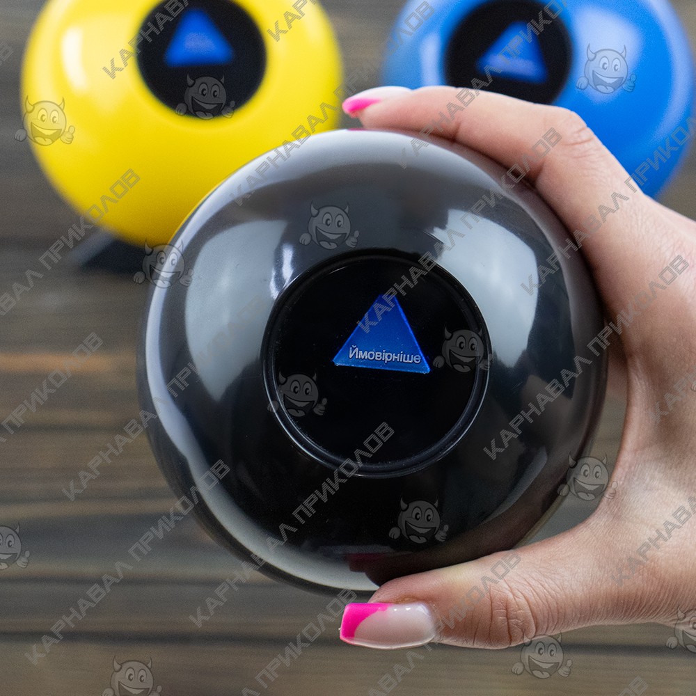 Вы не можете принять решение? Не знаете какой путь выбрать? Магический Шар Предсказатель на украинском языке (10см) черный поможет вам в принятии решения! Отличный подарок друзьям или любимым, классное развлечение для компании! Шар предсказатель - это не электронное устройство. Принцип работы его простой. Шар разворачивают тыльной стороной. Задается вопрос шару. После шар переворачивается и в окошке шара всплывает ответ. Всплывает в прямом смысле. Внутри шара расположена колба с окрашенной жидкостью, в которой плавает тетраэдр с вариантами ответов. Данная система обеспечивает рандомность ответов. В изделии нет батареек и других электронных элементов. В связи с этим может всплыть не грань многогранника, а его ребро. В такой ситуации нужно провести повторные манипуляции по приведению в движение тетраэдра внутри колбы (потрясти, покрутить) и получить один из вариантов ответа. Варианты ответов на украинском языке. Интернет магазин Карнавал Приколов предлагает купить интересные и оригинальные подарки по доступным ценам. Ваш подарок будет радовать своего нового обладателя еще очень долго, даря улыбку каждый день!