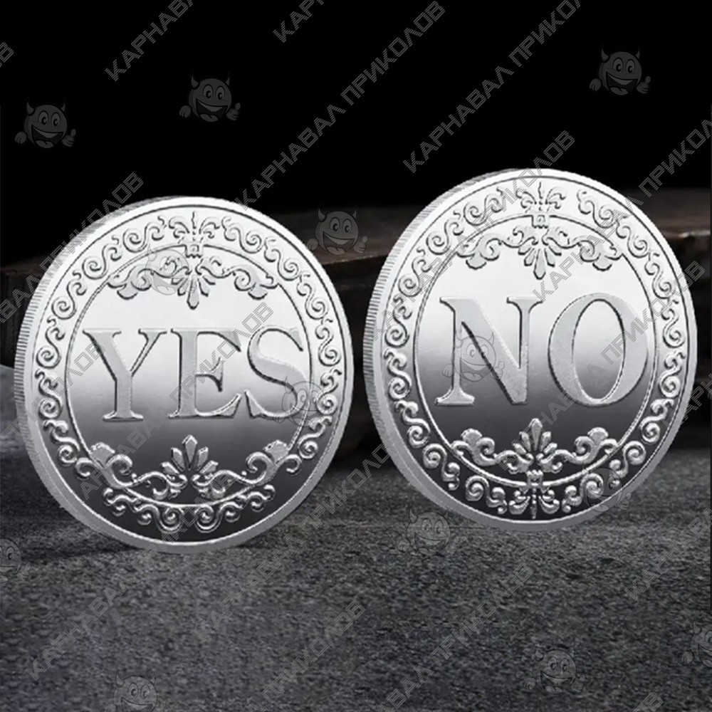 Сувенирная монета принятия решений YES/NO 3702 (серебряная) – Ваш персональный оракул. Не уверены в выборе? Не знаете, какой ответ дать? Позвольте судьбе решить вас с помощью этой стильной сувенирной монеты! Это не просто аксессуар, а веселый и оригинальный способ развеять сомнения или развлечь друзей в компании. Монета имеет сдержанный и элегантный серебристый блеск, подчеркивающий детали узора. Монета изготовлена из высококачественного металла, обладает приятным весом и высокой износостойкостью. На одной стороне нанесена четкая надпись YES (ДА). На другой – NO(НЕТ). Обе стороны украшены изящным барочным узором по кругу, что придает монете эстетический вид. Почему это крутой подарок? Помогает быстро и с юмором принять мелкие бытовые решения. Стильный сувенир, прекрасно смотрящийся в коллекции, на рабочем столе или в кошельке как талисман. И просто оригинальный презент. Прекрасная идея для подарка коллеге, вторую или на вечеринку.