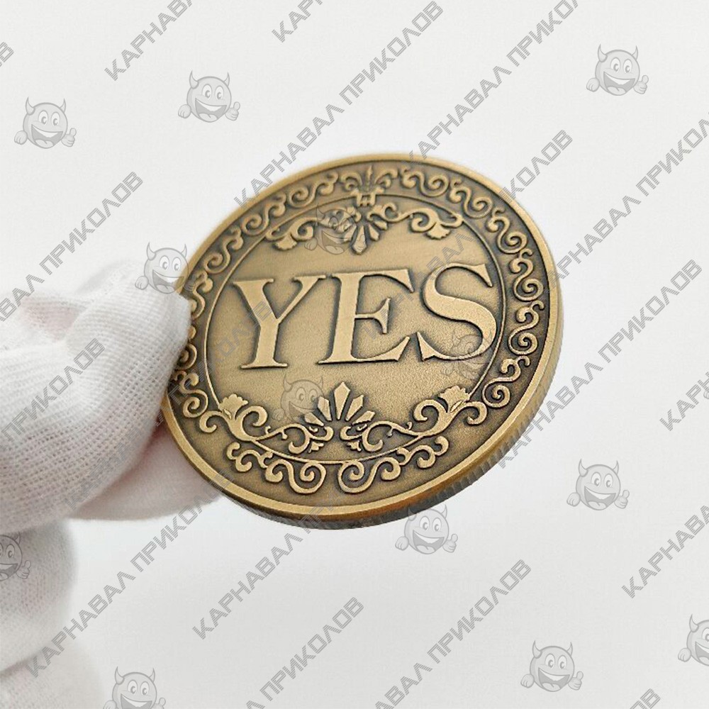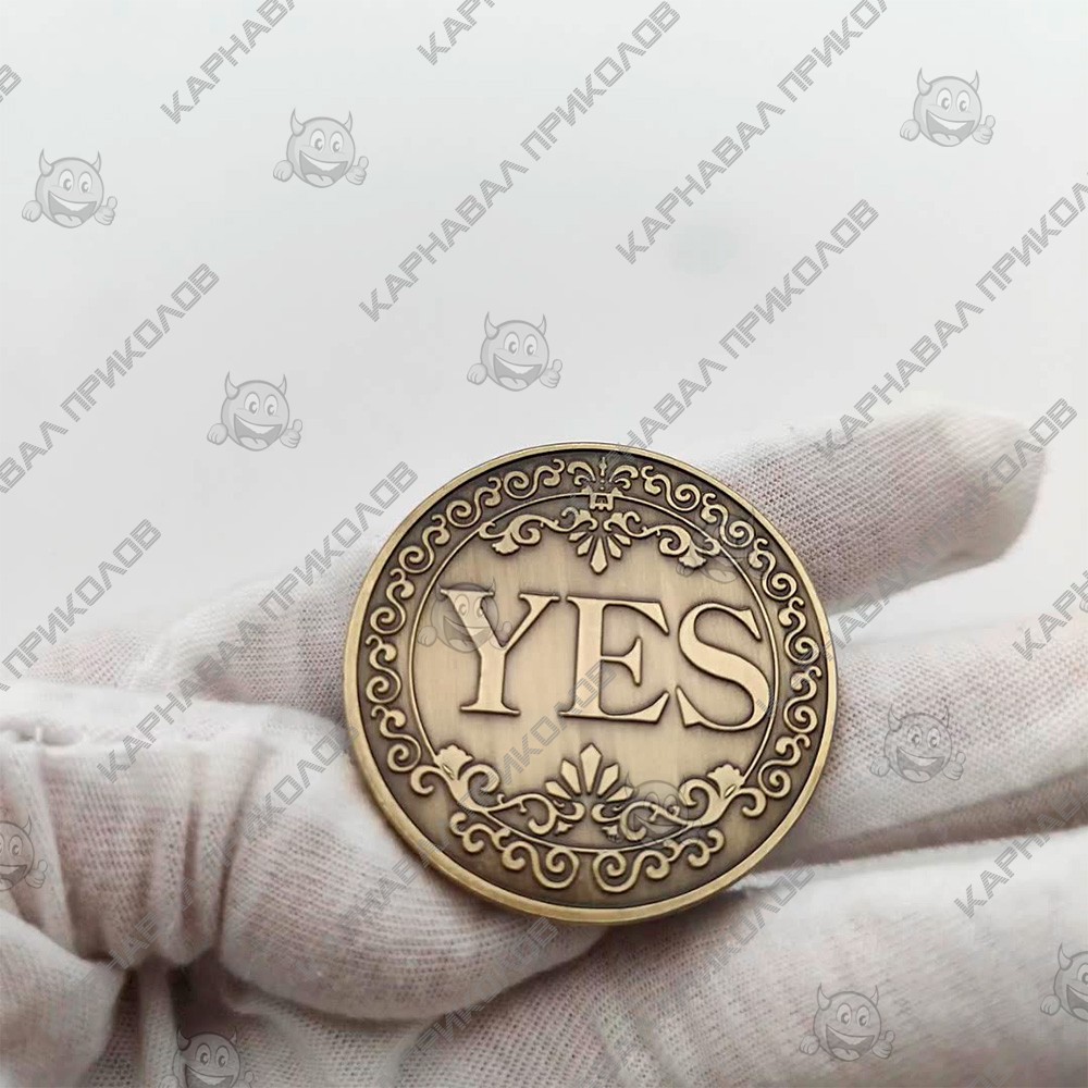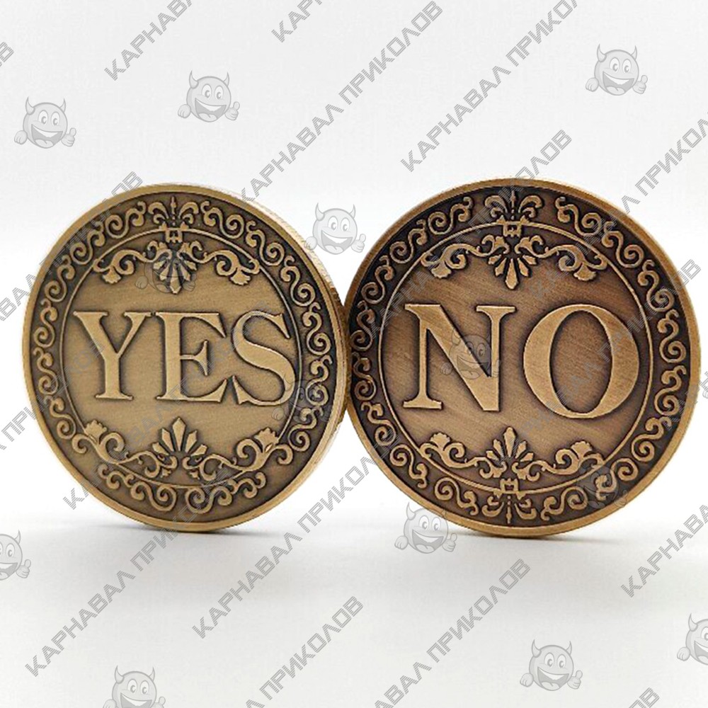 Сувенирная монета принятия решений YES/NO 3703 (золото антик) – Ваш персональный оракул. Не уверенны в выборе? Не знаете, какой ответ дать? Позвольте судьбе решить вас с помощью этой стильной сувенирной монеты! Это не просто аксессуар, а веселый и оригинальный способ развеять сомнения или развлечь друзей в компании. Монета имеет стилизованное под старину матовое покрытие с благородным отливом для поклонников винтажа. На одной стороне нанесена четкая надпись YES (ДА). На другой – NO(НЕТ). Обе стороны украшены изящным барочным узором по кругу, что придает монете эстетический вид. Почему это крутой подарок? Помогает быстро и с юмором принять мелкие бытовые решения. Стильный сувенир, прекрасно смотрящийся в коллекции, на рабочем столе или в кошельке как талисман. И просто оригинальный презент. Прекрасная идея для подарка коллеге, вторую или на вечеринку.