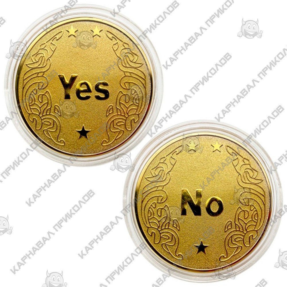 Сувенирная монета принятия решений YES/NO 3801 (золотая) - стильный выбор судьбы. Ищете оригинальный способ разрешить спор или просто добавить элемент игры в принятии ежедневных решений? Эта серия сувенирных монет сочетает в себе утонченный дизайн и практичность, становясь отличным аксессуаром для вашего рабочего стола или кармана. У монеты насыщенный золотистый цвет с зеркальным блеском на символах. Монета изготовлена из качественного металла, имеет четкую рельефную чеканку и приятную на ощупь фактуру. На одной стороне размещена надпись Yes (Да), на другой – No (Нет). Центральная надпись окружена декоративными растительными орнаментами и тремя звездами (две сверху, одна снизу), что придает монете эстетический и завершенный вид. Каждая монета поставляется в прозрачном пластиковом футляре, который надежно защищает металлическую поверхность от царапин и окисления. Кому этот сувенир? Веселый подарок для друзей, который поможет определить, кто следует за кофе или чья очередь выбирать фильм. Или стильный антистресс-аксессуар для офисного стола для коллег.