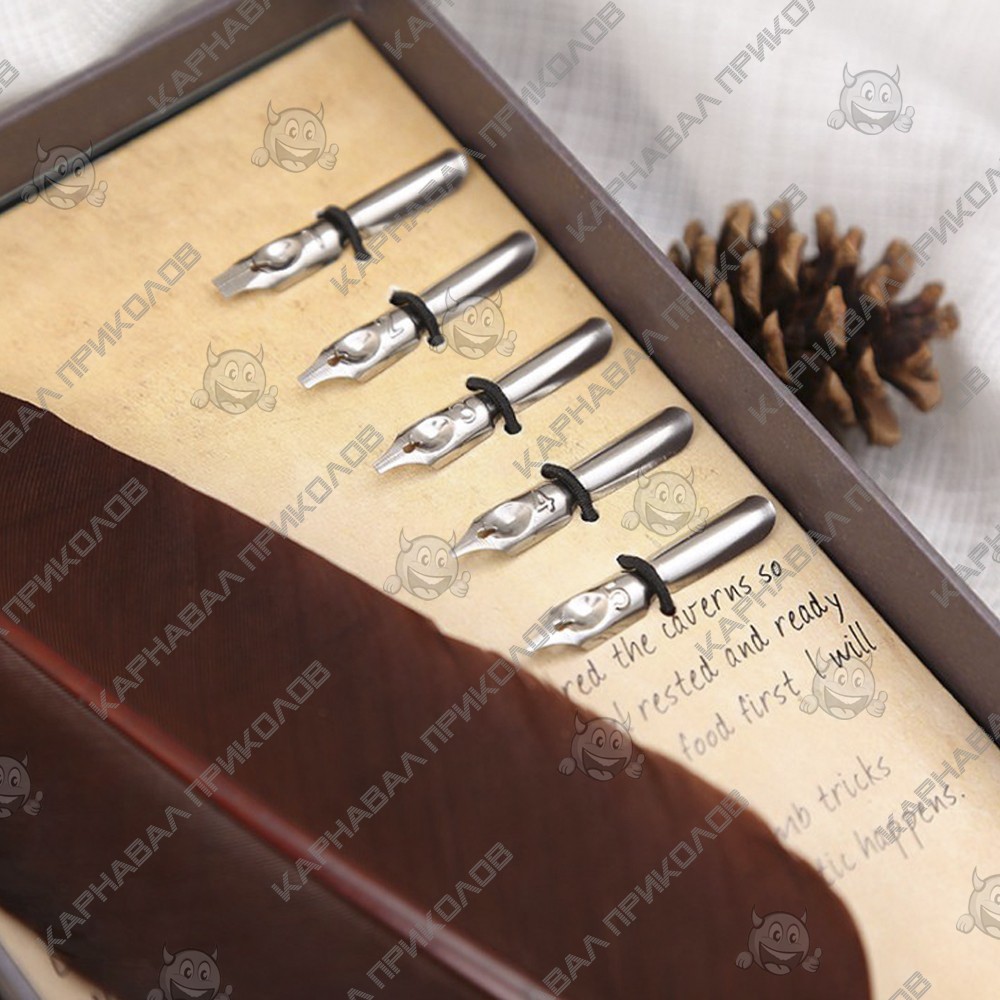 Винтажный подарочный набор для каллиграфии Ручка перьевая (красный): Искусство письма и магия старинных посланий! Окунитесь в мир изящного письма и старинных традиций с нашим Винтажным подарочным набором для каллиграфии Ручка перьевая (красный). Этот элегантный комплект станет идеальным подарком для ценителей классики, творческих личностей, а также для тех, кто ищет уникальный сувенир, вдохновленный атмосферой волшебства. С такой ручкой каждое написанное слово обретает особое очарование и вес. В центре набора — изящная перьевая ручка, выполненная из пера благородного красного цвета. Она прекрасно лежит в руке и позволяет ощутить всю прелесть письма по старинке. Ручка и элементы набора сочетают в себе винтажную эстетику и утонченность, напоминая о временах, когда письмо было настоящим искусством. Набор изготовлен из прочных материалов, включая металл для держателя ручки и натуральное перо для наконечника, а также элегантную стеклянную чернильницу. Всё это упаковано в стильную картонную коробку, которая подчеркивает подарочный статус. Винтажный подарочный набор для каллиграфии Ручка перьевая идеальный подарок для любителей каллиграфии, писателей, художников, коллекционеров или просто тех, кто ценит красивые и необычные предметы. Этот набор — не просто пишущий инструмент, это целая история. Для истинных ценителей: Позволяет практиковать искусство каллиграфии, создавать приглашения, письма и открытки с уникальным, рукописным шармом. Изысканный элемент декора: Прекрасно дополнит рабочий стол, библиотеку или кабинет, придав интерьеру нотку аристократизма. Вдохновение для творчества: Стимулирует воображение и помогает создавать настоящие шедевры. Магический сувенир для фанатов: Для всех, кто мечтает о волшебном мире Хогвартса, эта перьевая ручка станет прекрасным сувениром по тематике Гарри Поттера, позволяя почувствовать себя настоящим учеником школы чародейства и волшебства, записывающим заклинания или письма на урок. Погрузитесь в атмосферу старины и волшебства с Винтажным подарочным набором для каллиграфии Ручка перьевая (красный) от Карнавала Приколов!