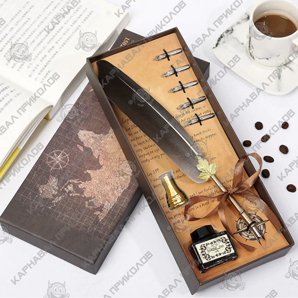 Винтажный подарочный набор для каллиграфии Ручка перьевая (серый): Искусство письма и магия старинных посланий! Окунитесь в мир изящного письма и старинных традиций с нашим Винтажным подарочным набором для каллиграфии Ручка перьевая (серый). Этот элегантный комплект станет идеальным подарком для ценителей классики, творческих личностей, а также для тех, кто ищет уникальный сувенир, вдохновленный атмосферой волшебства. С такой ручкой каждое написанное слово обретает особое очарование и вес. В центре набора — изящная перьевая ручка, выполненная из пера благородного серого цвета. Она прекрасно лежит в руке и позволяет ощутить всю прелесть письма по старинке. Ручка и элементы набора сочетают в себе винтажную эстетику и утонченность, напоминая о временах, когда письмо было настоящим искусством. Набор изготовлен из прочных материалов, включая металл для держателя ручки и натуральное перо для наконечника, а также элегантную стеклянную чернильницу. Всё это упаковано в стильную картонную коробку, которая подчеркивает подарочный статус. Винтажный подарочный набор для каллиграфии Ручка перьевая идеальный подарок для любителей каллиграфии, писателей, художников, коллекционеров или просто тех, кто ценит красивые и необычные предметы. Этот набор — не просто пишущий инструмент, это целая история. Для истинных ценителей: Позволяет практиковать искусство каллиграфии, создавать приглашения, письма и открытки с уникальным, рукописным шармом. Изысканный элемент декора: Прекрасно дополнит рабочий стол, библиотеку или кабинет, придав интерьеру нотку аристократизма. Вдохновение для творчества: Стимулирует воображение и помогает создавать настоящие шедевры. Магический сувенир для фанатов: Для всех, кто мечтает о волшебном мире Хогвартса, эта перьевая ручка станет прекрасным сувениром по тематике Гарри Поттера, позволяя почувствовать себя настоящим учеником школы чародейства и волшебства, записывающим заклинания или письма на урок. Погрузитесь в атмосферу старины и волшебства с Винтажным подарочным набором для каллиграфии Ручка перьевая (серый) от Карнавала Приколов!