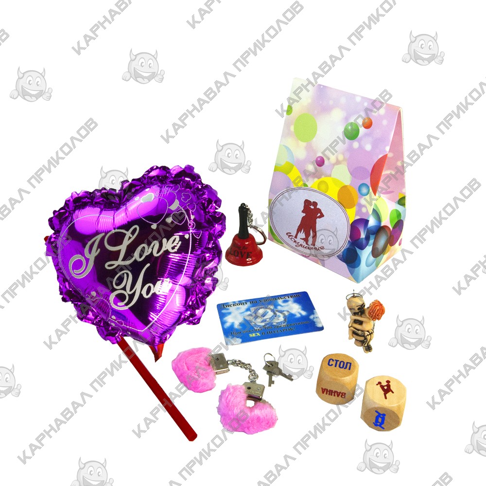 Самое настоящее искушение для взрослых! Оригинальный подарок Искушение отлично подойдет для презента семейной паре или влюбленным. Подарочный набор запечатан в красочную коробочку, в которой несколько достаточно экстравагантных и интересных сувениров для Вашей второй половинки. Кубики семейные позы камасутры, приятно удивят Вашу половинку. Кости деревянные, на каждой стороне нарисованы различные позы и места, где можно испробовать выпадающие позиции. Такие кости разнообразят Вашу любовную жизнь и придадут пикантность отношениям. Брелок силиконовый Вилли, подзадорит и развеселит получателя, такой подарок прикол гарантированно понравится всем. Прикольный колокольчик SEX позволит, не стесняясь намекнуть Вашей пассии на Ваше настроение и намерения. Меховые наручники на пальцы подойдут для любовной игры, достаточно только немного пофантазировать. Такое необычное украшение для пальчиков развеселит даже самого серьезного человека. Дополняет набор прикольна карта Дисконт на удовольствие с забавными шутками. Купить необычный и вместе с этим нестандартный подарок Вы можете в интернет-магазине Карнавал Приколов, он презент будет хорошим вариантом для поздравления с годовщиной отношений или Днем Влюбленных. В состав входит: шарик на палочке, кубики семейные Камасутра МОДЕРН, наручники на пальцы, дисконтная карта Дисконт на удовольствие, колокольчик брелок винтажный сердце, магнит шоколадка.