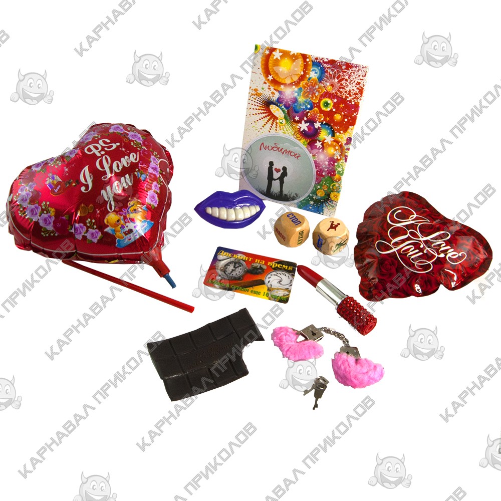 Оригинальный подарок 67102 ЛЮБИМОЙ это восхитительный сюрприз девушке на День святого Валентина или годовщину свадьбы. Необычные и экстравагантные вещицы собраны в яркую коробку. Так что Вам не нужно даже задумываться об упаковке подарка, Вы просто можете купить подарочный набор и сразу подарить свой половинке. Удостоверение Богиня Любви и карта Дисконт на время с юмористической надписью гарантированно вызовут улыбку и развеселят Вашу пассию. Мягкий брелок сердечко станет маленьким доказательством Вашей большой любви. Магнит шоколадка с прикольной надписью украсит холодильник и развеселит гостей веселенким текстом. Кубики семейные позы камасутры, удивят Вашу возлюбленную. Кости деревянные, на каждой стороне нарисованы различные позы и интересные места, где можно их испробовать. Такие кости разнообразят Вашу любовную жизнь и придадут пикантность отношениям. Дополнят этот необычный набор меховые наручники на пальцы. С помощью этих нетрадиционных украшений Вы можете поиграть в амурные игры с любимым человеком или просто посмеяться от души. Такой прикол для взрослых даст возможность с юмором провести ночь. Купить этот необычный подарок для любимой Вы можете в интернет-магазине Карнавал Приколов. В состав входит: шарик на палочке, самонадувающийся шарик, кубики семейные Камасутра МОДЕРН, наручники на пальцы, дисконтная карта Дисконт на время, свисток губы, брелок винтажный сердце, магнит шоколадка.