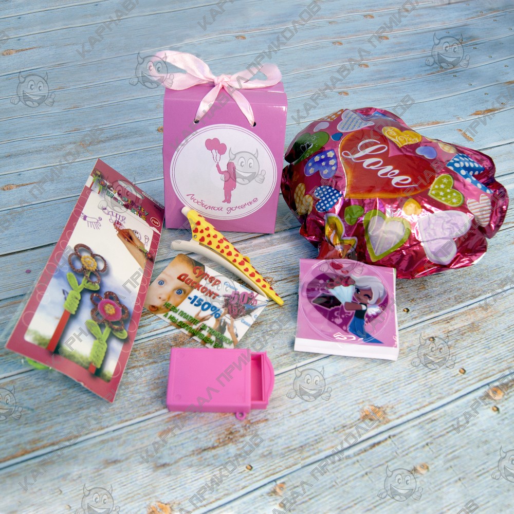 У всех родителей возникает вопрос, что же подарить своей маленькой доченьке что бы это был интересный и в то же время необычный подарок? Маленькие леди любят все яркое и необычное, и обязательно что бы было новое и неизведанное. Такой набор можно купить для подарка детям в детский садик, на утренник или просто порадовать ребенка в будний день. Такой детский набор состоит из Красочной коробки с интересными подарками, которые покорят любую девчушку. Купив Подарок детский 67 1 Любимой доченьке в нашем интернет-магазине Вы получаете не только качественный товар, а и 100% позитивных впечатлений от приобретения. Среди нашего широкого ассортимента товаров, Вы найдете множество необычных и оригинальных подарков для различных мероприятий. В набор входит: Креативный набор для плетения – 1шт., Ручка Заколка (желтая) – 1шт., Прикольная карта Супер Дисконт – 1 шт., Фокус с монетой – 1шт., Украшение Мышонок 11х7см (белый) 9311 - 1шт., Наклейка объемная Сердечко – 1шт., Шарик с палочкой (2 см) Сердечко с рисунком – 1шт. Цвет комплектующих может отличаться от цвета указанного на фотографии.