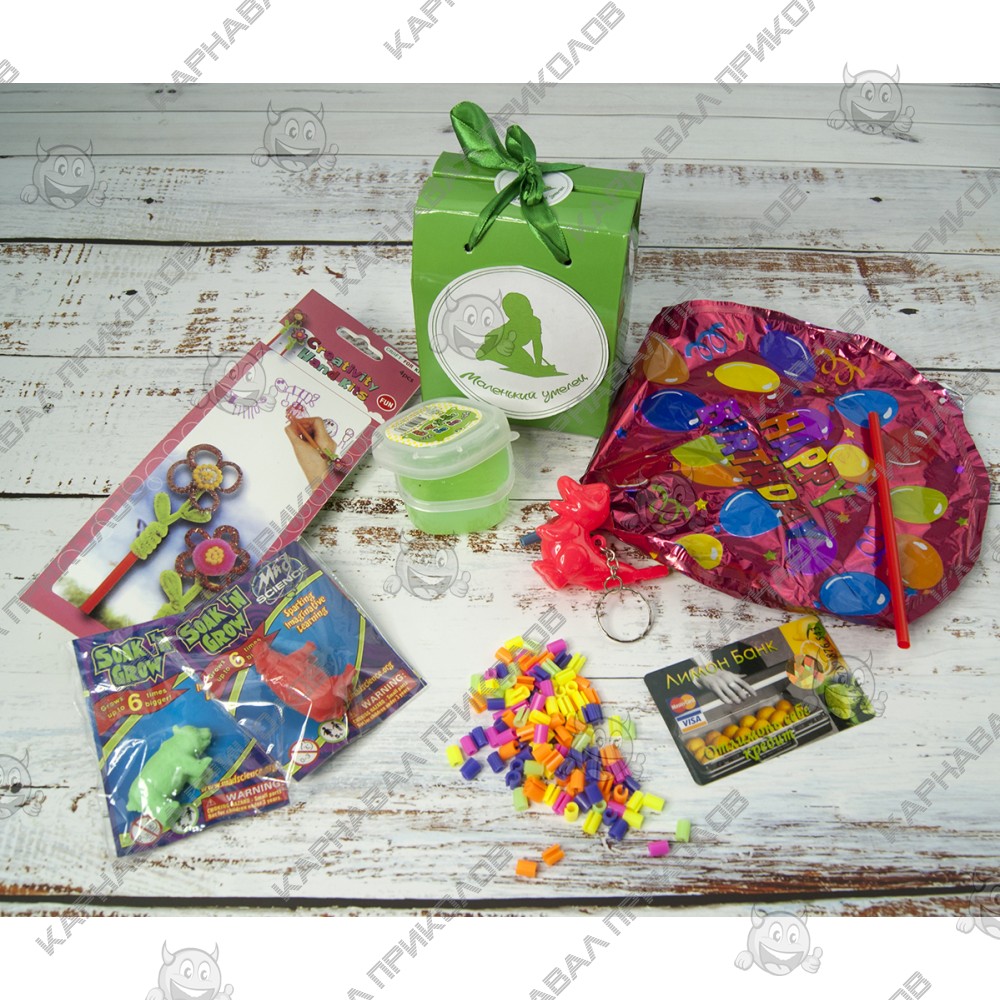 Ваша непоседа круглыми сутками залипает в Свинку Пэппу и ей больше ничего не любопытно? Займите ее лучше чем-то более полезным, и интернет-магазин Карнавал Приколов готов помочь Вам с этим. Плодотворней всего проводить время с какой-то полезной вещицей. Например, оригинальный подарок Маленький умелец будет очень интересным и увлекательным для ребенка. Такой детский набор состоит из Красочной коробки с интересными подарками, которые покорят любого сынишку. Купив Подарок детский 67 12 Маленький умелец в нашем интернет-магазине Вы получаете не только качественный товар, а и 100% позитивных впечатлений от приобретения. Среди нашего широкого ассортимента товаров, Вы найдете множество необычных и оригинальных подарков для различных мероприятий. В набор входит: Креативный набор для плетения – 1шт., Лизун Слайм светонакопительный средний – 1шт., Декор для наушников – 1шт., Растущие Животные большие (звери) – 2шт., Брелок SVI Свисток Дракончик -1шт., Прикольная Кредитка Лимон Банк – 1шт., Шарик с палочкой (2 см) Happy Birthday – 1шт. Цвет комплектующих может отличаться от цвета указанного на фотографии.