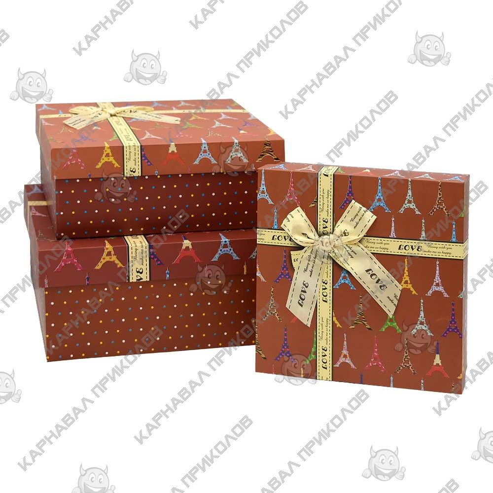 Мы хотим помочь вам максимально дополнить свой ассортимент упаковки необычных подарков, поэтому предлагаем вам купить подарочную коробку КП-2. 4 (набор 7шт), в набор входит 7 коробок разных размеров. Интернет магазин Карнавал Приколов предлагает преобрестинабор подарочных коробок разного размера, который станет незаменимым атрибутом в праздничные дни и увеличит средний чек заказа. Ведь для любого подарка нужна упаковка. Разве не прекрасно, когда все можно купить в одном месте? Подарочная коробка формата крышка-дно, с внешней стороны оформленная в современном стиле, изысканным рисунком эйфелевых башень на крышке, украшенной золотой лентой с пышным бантом и разноцветным горошком на дне, внутренней в белый цвет. Материал изготовления – многослойный мелованный картон плотностью 235 гр/м2. Подарочные коробки - подходят не только для упаковки подарка. Но и своего рода являются самим подарком. Куда в дальнейшем можно будет складывать разные безделушки. Так же подходят для создания из живых цветов композиций. Стильные и нежные коробочки идеально подойдут для дизайна интерьера, а также для хранения ваших вещей-мелочей. Будет идеальным дополнением оригинального подарка девушке, маме, жене.