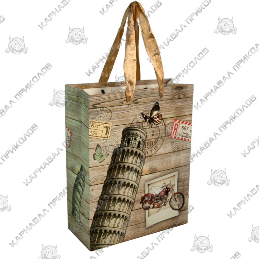 Мы хотим помочь вам максимально дополнить свой ассортимент упаковки необычных подарков, поэтому предлагаем вам купить подарочный пакет (24х18см) ПП-5. 2. Интернет магазин Карнавал Приколов предлагает преобрестинабор подарочных коробок разного размера, который станет незаменимым атрибутом в праздничные дни и увеличит средний чек заказа. Ведь для любого подарка нужна упаковка. Разве не прекрасно, когда все можно купить в одном месте? Материал изготовления – многослойный мелованный картон плотный, благодаря чему пакет выдерживает до 3кг и не разлезется сразу после попадание под дождь. Купить подарочный пакет с изображением пизанской башни по выгодной цене в интернет магазине Карнавал Приколов Подарочные бумажные пакеты - подходят не только для упаковки подарка. Но и своего рода являются самим подарком. Куда в дальнейшем можно будет складывать разные безделушки. Так же подходят для повседневного использования. Стильные и нежные пакетики идеально подойдут для упаковки подарка, а также для хранения ваших вещей-мелочей. Будет идеальным дополнением оригинального подарка девушке, маме, жене.