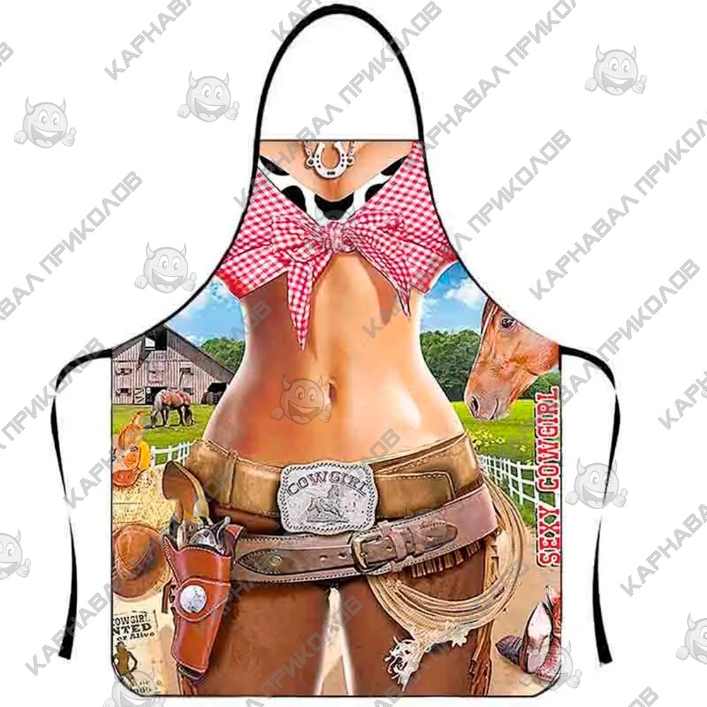 Фартук с приколом Вестерн Леди - незаменимый аксессуар! Если на кухне появляется Вестерн Леди, значит, вечер обещает быть жарким! Этот фартук - женское воплощение духа свободы и авантюризма Дикого Запада. Он создан для смелых женщин, которые любят быть в центре внимания и умеют превратить даже приготовление обычного ужина в захватывающее представление. Принт фартука мастерски имитирует стройную женскую фигуру в классическом ковбойском стиле. Яркий топ в красно-белую клетку, завязанный узлом, кокетливо открывает плоский живот, подчеркивая женственность владелицы. Образ продуман до мельчайших подробностей - от стильного кулона в виде подковы на удачу до аутентичного кожаного пояса с массивной пряжкой, на которой красуется надпись COWGIRL. Как и полагается настоящей хозяйке прерий, на поясе висит кобура с револьвером и лассо. На заднем фоне изображена ферма и грациозные лошади, что создает глубокий и завершенный сюжет. Фартук с приколом Вестерн Леди - это идеальное дополнение к мужскому фартуку Вестерн Ковбой» Пары обожают покупать такие комплекты для совместного барбекю или тематических фотосессий - это готовый семейный лук с юмором. Шикарный сюрприз для подруги на девичник, 8 марта или день рождения. Это комплимент её красоте и отличному чувству юмора в одном флаконе. Ткань мягко облегает фигуру, а завязки позволяют подогнать фартук под любой рост и параметры, гарантируя, что костюмчик будет сидеть.Фартук с приколом Вестерн Леди - это не просто кухонный аксессуар, а готовое эмоциональное решение, которое закрывает вопрос поиска оригинального подарка. Добавьте этот харизматичный аксессуар в список подарков прямо сейчас - обеспечьте себе возможность подарить яркие эмоции и незабываемые моменты!