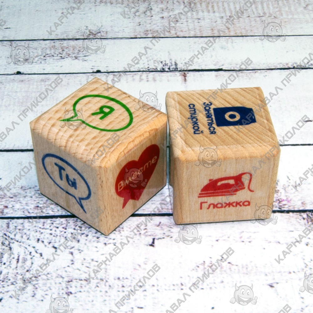 Кубики Домашних дел - отличный способ разнообразить свои домашние дела. С помощью которых распределять обязанности гораздо проще и интереснее. Кубики выполнены из дерева с нанесением печатных 6 видов действий и 6 локаций, в которых вы можете испробовать выпавшие комбинации. Просто кидайте кубики и решайте, кому какое из домашних дел предстоит выполнять сегодня. Добавьте в повседневные хлопоты азарт и веселье! Купив игральные кости в интернет магазине Карнавал Приколов Вы получаете качественный товар украинского производства и 100% позитивных впечатлений от преобретения.