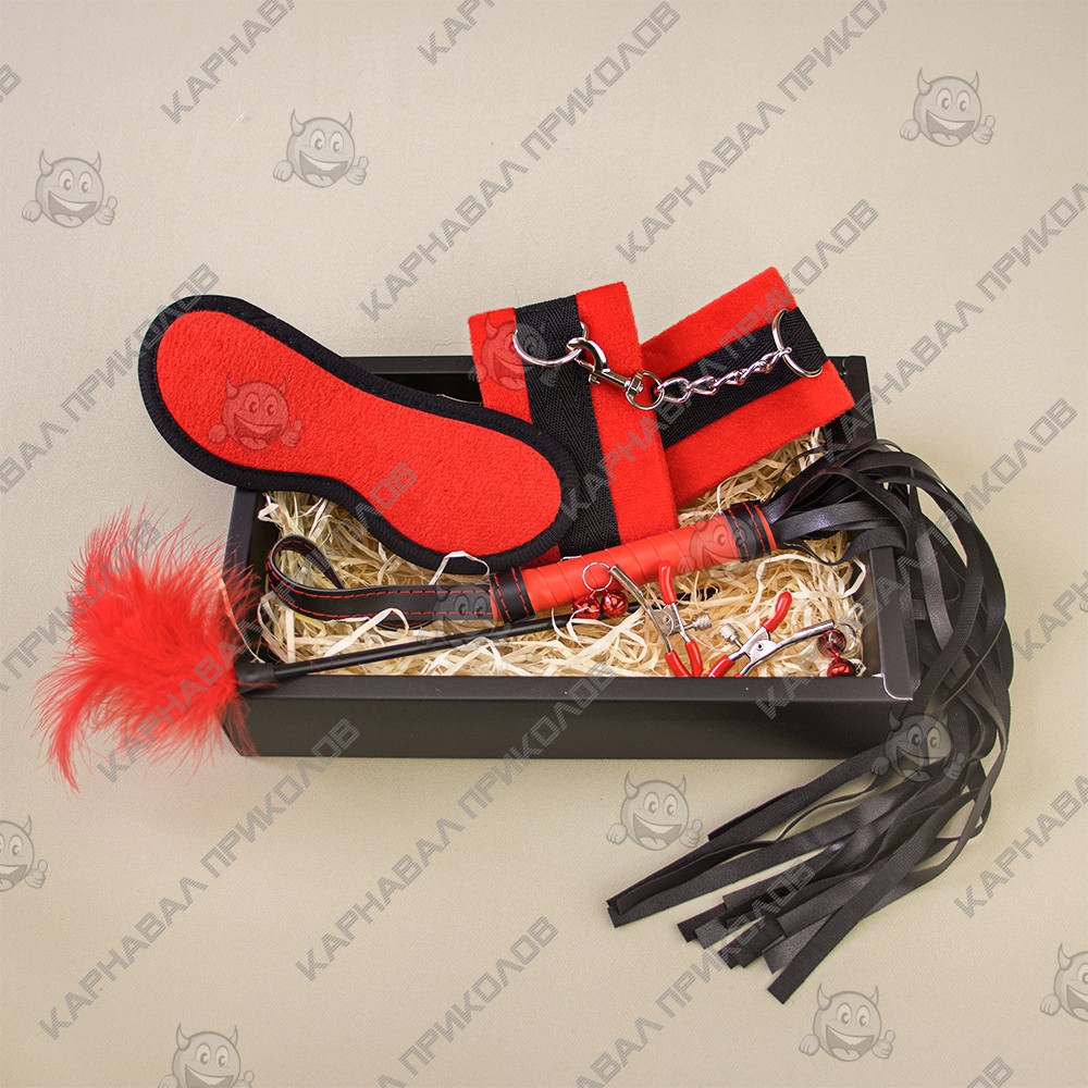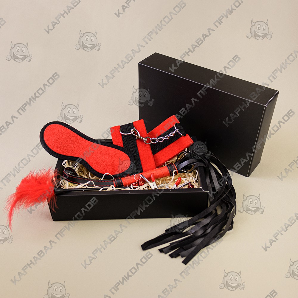 Подарочный набор для эротического связывания 6 предметов 12681 (красный) - 6 предметов для удовольствия. Предлагаем вашему вниманию Подарочный набор для эротического связывания 6 предметов 12681 (красный) все, что нужно, чтобы зафиксировать, приласкать и наказать в стильном боксе! Все аксессуары изготовлены из мягкого, но плотного материала, приятного на ощупь и выглядит изысканно. Будь то красиво или сурово, но всегда - стильно и изысканно. Оденьте маску на глаза, чтобы сосредоточится на ощущениях, накажи партнера, не дай ему пошевелиться, мучай его возбуждающими ласками. А, может, ты хочешь, чтобы все это сделали с тобою? Тогда просто открой свою коробочку страсти - достань любой предмет и отдайся наслаждению! В Подарочный набор для эротического связывания 6 предметов 12681 (красный) входят: наручники с цепочкой для присоединения к себе, застегиваются на пряжу и регулируются по объёму маска для сна: плотная, не пропускает свет, на широкой, комфортной резинке зажимы для сосков с красивыми сиреневыми бусинами плеть для максимальных ласк нежный пушок для контраста ощущений. Подарочный набор для эротического связывания 6 предметов 12681 (красный) предлагает возможность получить максимум удовольствия.