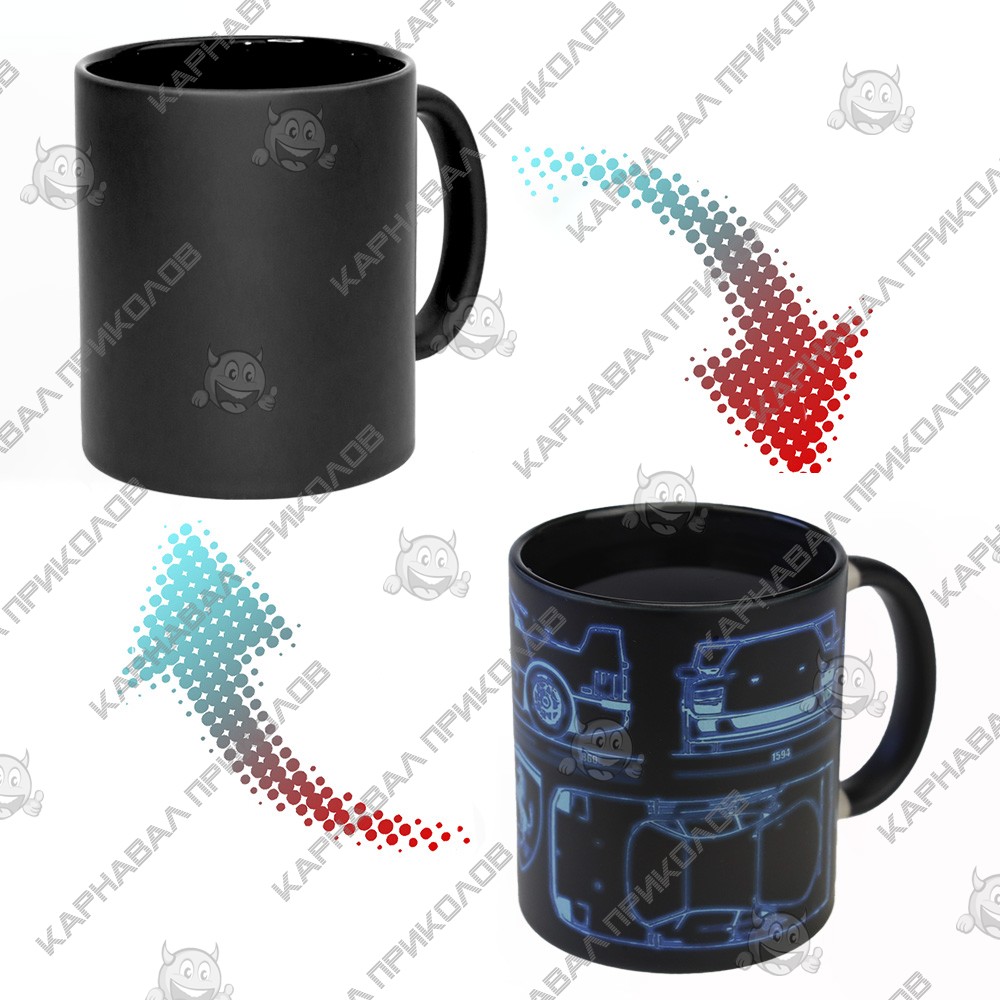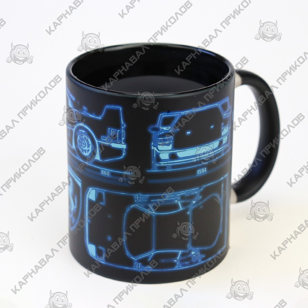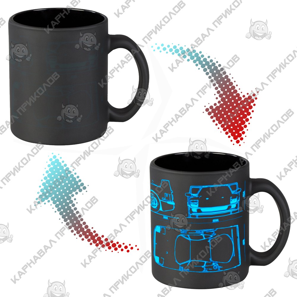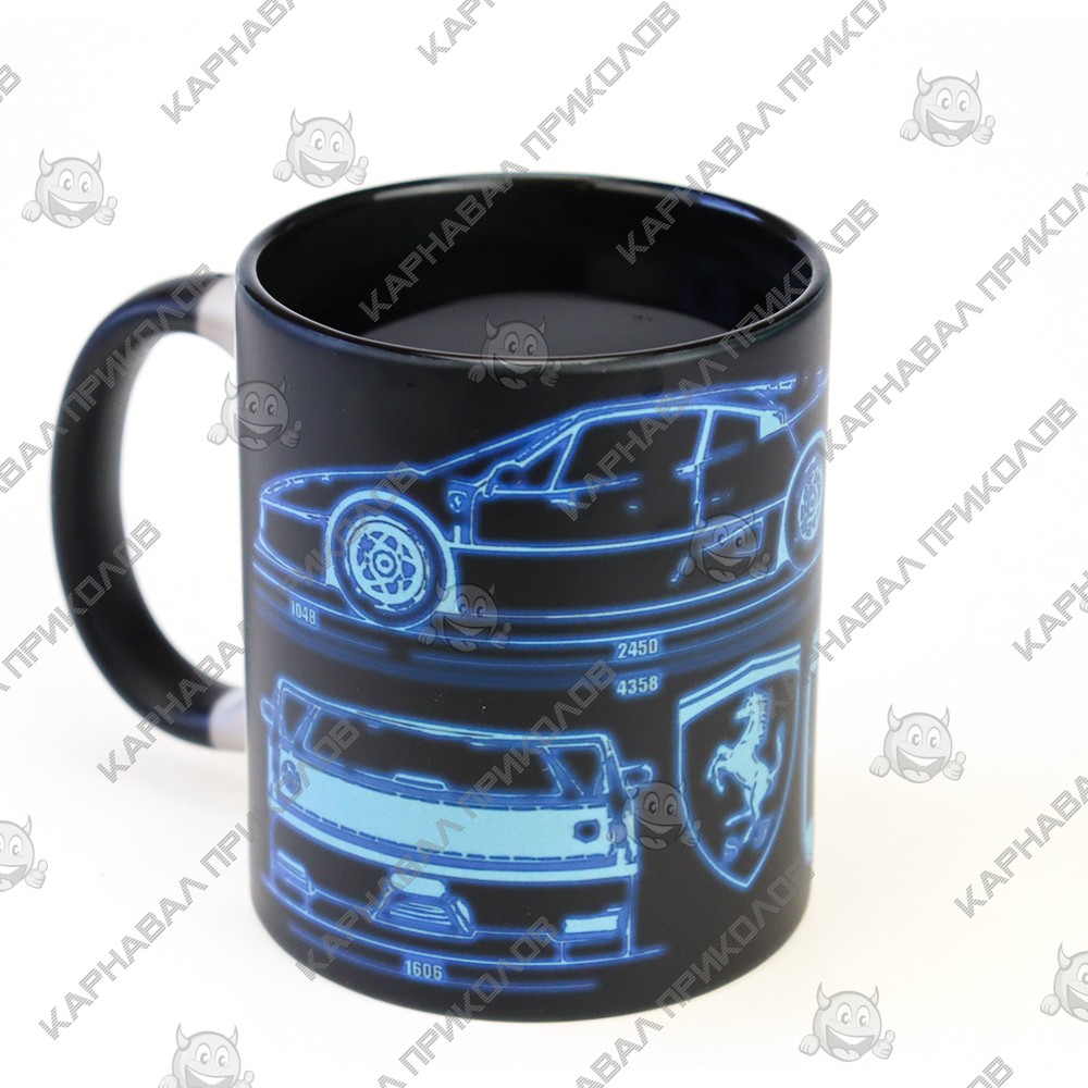 Чашка хамелеон 66054 ЧРЖ Ferrari neon (черная) с виду обычная однотонная чашка, но если залить горячий напиток, как на ней появляется замысловатая картинка – чертежи автомобиля Феррари в неоне. Объем керамической чашки 300 мл, благодаря чему, Вы можете, целиком и полностью насладится любимым напитком. Такую чашку можно купить как оригинальный и особенный подарок автолюбителю, купить мотогонщику или просто подарить своему авто мастеру в знак внимания. А с этой чашкой, точно будет обеспечено основное внимание. Чашки собственного производства возможно под заказ любое количество. Широкий выбор чашек и кружек с забавным дизайном для любого повода Вы можете купить в интернет магазине Карнавал Приколов.