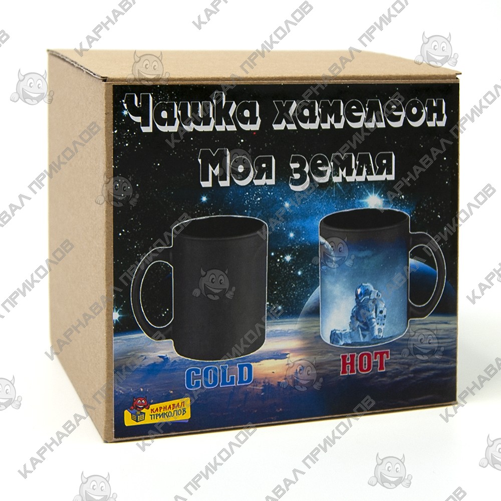 Чашка хамелеон 66154 Моя Земля (черная) - Это не просто чашка, это чашка с особыми свойствами. Стоит залить горячий напиток, как на ней появляется замысловатая картинка – астронавт с нежными чувствами смотрящим на планету Земля. Объем керамической чашки 300 мл, благодаря чему, Вы можете, целиком и полностью насладится любимым напитком. Такую оригинальную чашку можно подарить Вашему другу или подруге, которые увлекаются астрономией или географией. Так же такая чашка станет отличным подарком для ребенка. Широкий выбор чашек и кружек с забавным дизайном для любого повода Вы можете купить в интернет магазине Карнавал Приколов.
