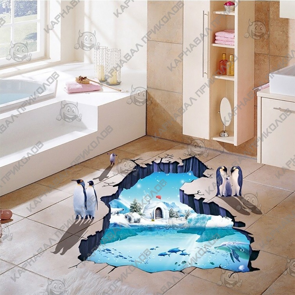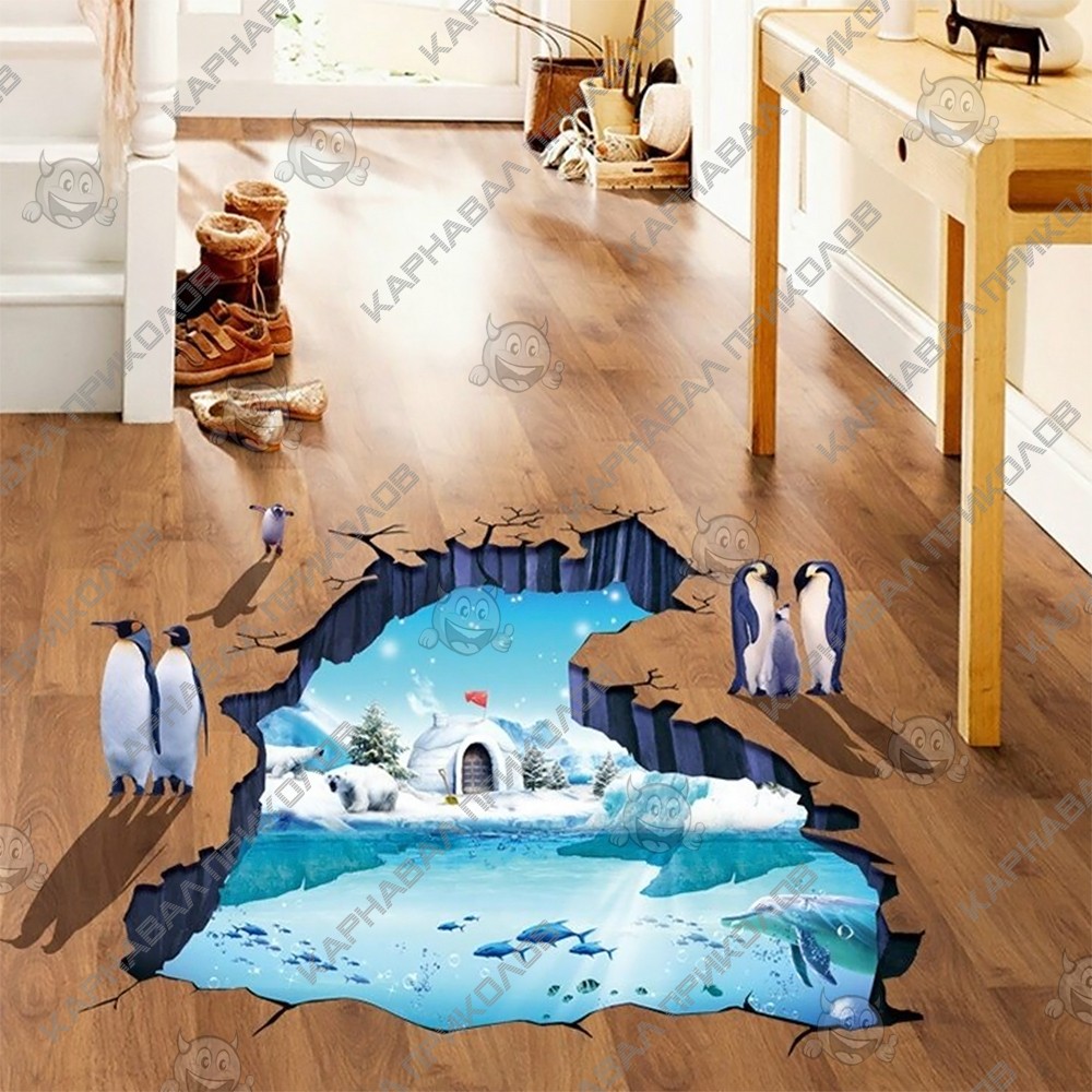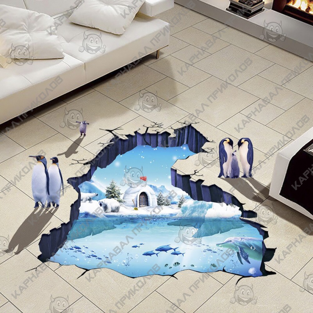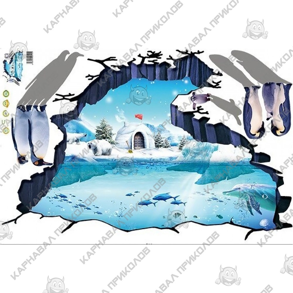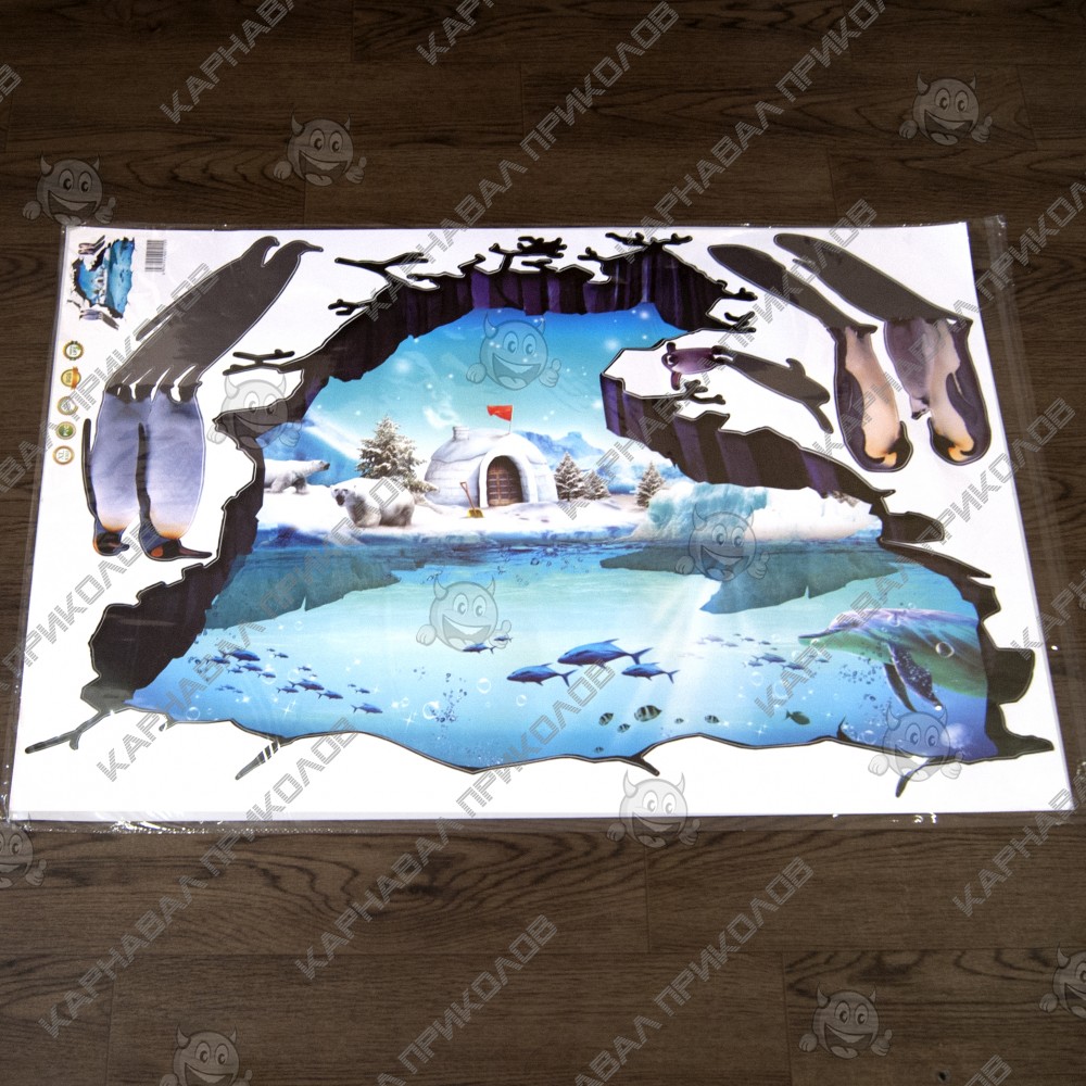 Интерьерная наклейка ZOO Полярные пингвины XL8303 90х60см - это быстрый способ классно украсить свой дом. Интернет-магазин Карнавал Приколов предлагает Вам купить интерьерные наклейки тематики животных, которые идеально подойдут на кухню, спальню, гостиную, детскую или игровую комнату. Украшение на стену оценят дети в своих спальнях или игровых комнатах. Интерьерная наклейка ZOO Полярные пингвины XL8303 90х60см с принтом 5 полярных пингвинов на фоне иглу на берегу Антарктиды. Размер листа с наклейками: 60х90 см. Как 3D наклейка клеится на стену ? Способ поклейки очень прост. Для начала необходимо очистить поверхность, на которую необходимо наклеить. После снимаем пленку и переносим рисунок на стену или другую плоскость рукой или ветошью. На какие поверхности можно клеить интерьерную наклейку ? Поклейка возможна на любую ИДЕАЛЬНО ГЛАДКУЮ ГЛЯНЦЕВУЮ поверхность, например : стена окрашенная глянцевой краской без каких-либо рельефов ( в краске не должно быть мелового компонента), стекло, зеркало, лакированные поверхности, гладкий пластик. На обои клеить НЕЛЬЗЯ. Ухаживать за стикерами на стену также достаточно легко, для этого необходимо лишь иногда протирать их влажной губкой или тряпкой. Яркость и насыщенность наклеек не меняется с течением времени, кроме того они абсолютно устойчивы к влажности.