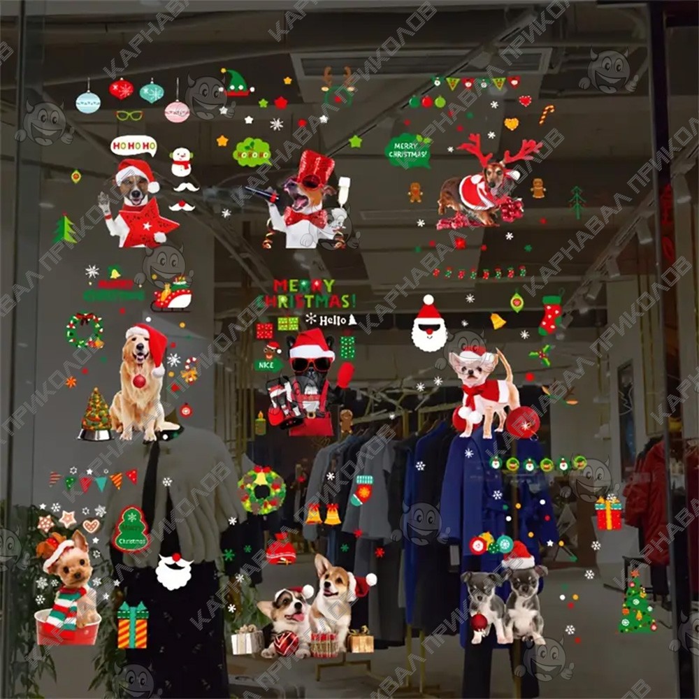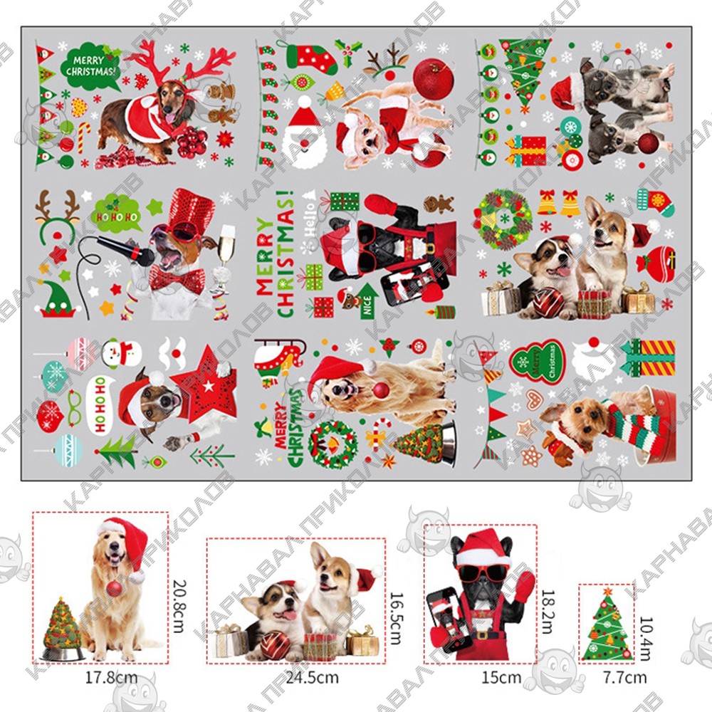 Интерьерная наклейка NG Merry Christmas Dogs JD2311 (9 листов А4)