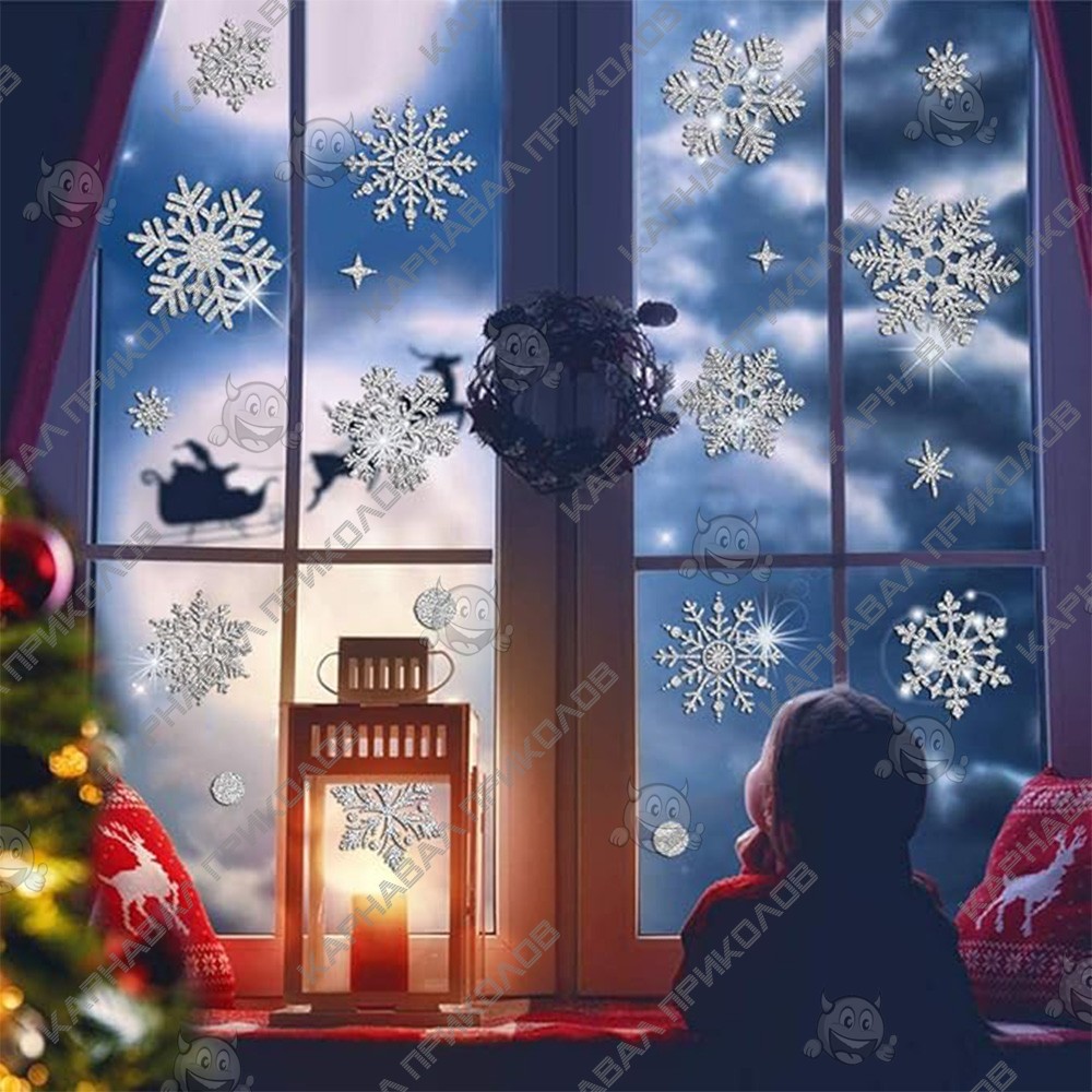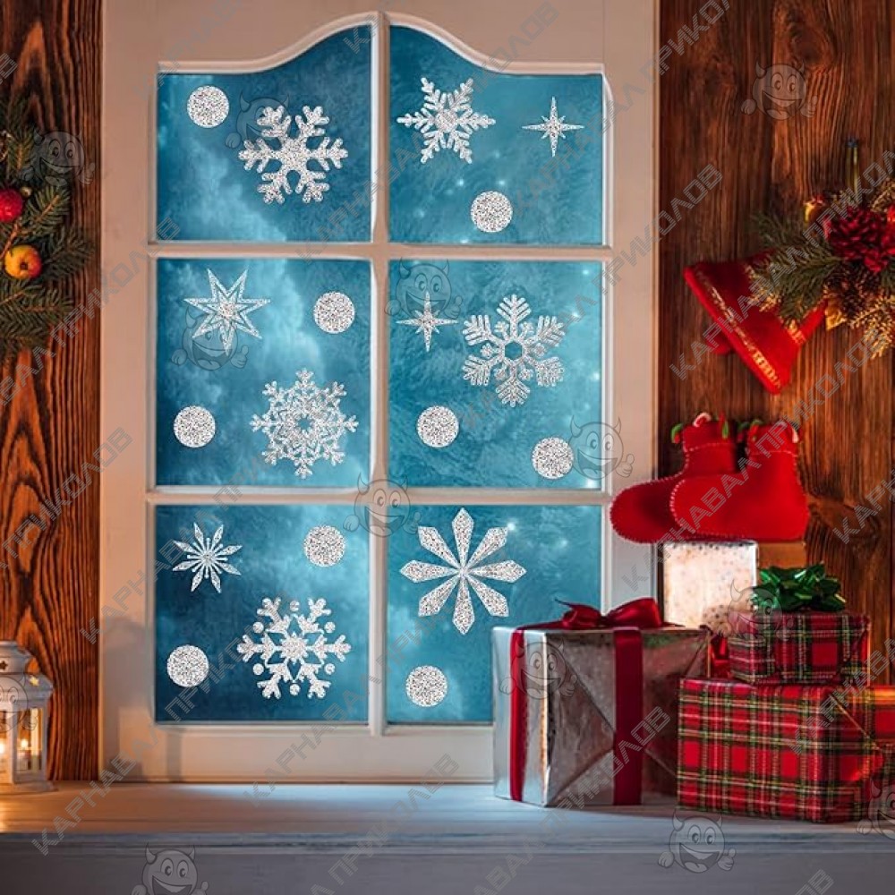 Интерьерная наклейка NG Снежинки микс серебряные JD2303 (9 листов А4) - это быстрый способ классно украсить свой дом к празднику. Интернет - магазин Карнавал Приколов предлагает Вам купить интерьерные наклейки новогодней тематики, которые идеально подойдут на кухню, спальню, гостиную, детскую или игровую комнату. Украшение на стену оценят дети в своих спальнях или игровых комнатах. Как 3D наклейка клеится на стену ? Способ поклейки очень прост. Для начала необходимо очистить поверхность, на которую необходимо наклеить. После снимаем пленку и переносим рисунок на стену или другую плоскость рукой или ветошью. На какие поверхности можно клеить интерьерную наклейку ? Поклейка возможна на любую гладкую поверхность, а именно : стена, стекло, дерево, металл, пластик, керамика. Ухаживать за стикерами на стену также достаточно легко, для этого необходимо лишь иногда протирать их влажной губкой или тряпкой. Яркость и насыщенность наклеек не меняется с течением времени, кроме того они абсолютно устойчивы к влажности.