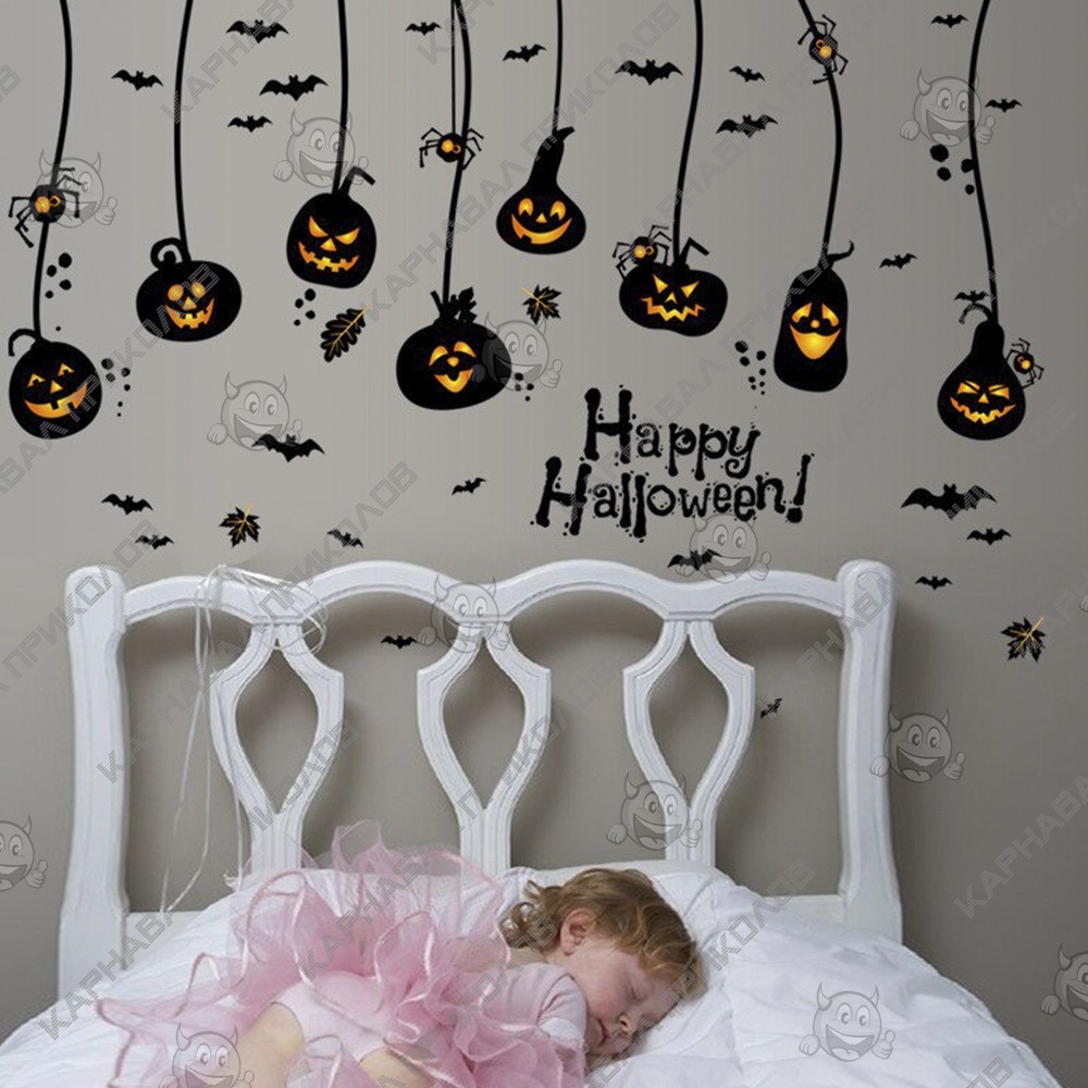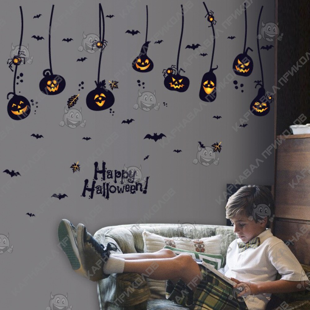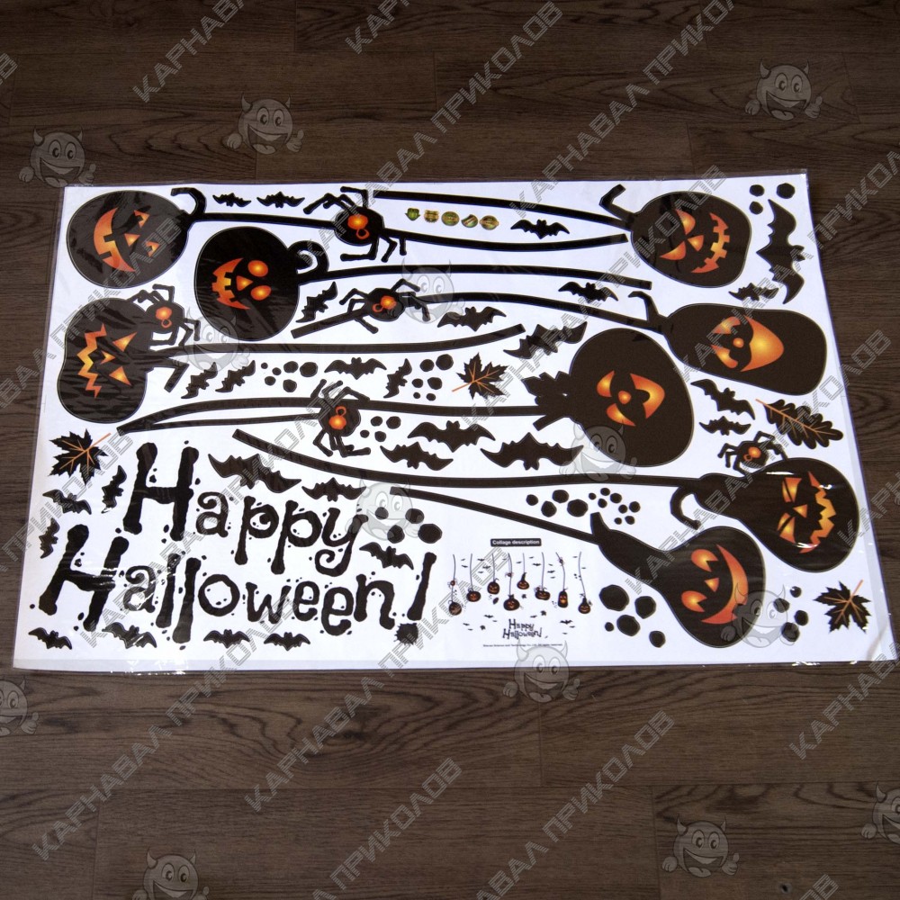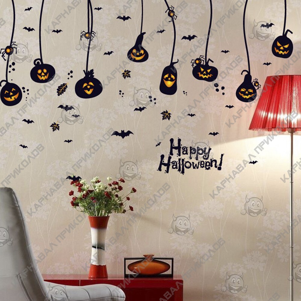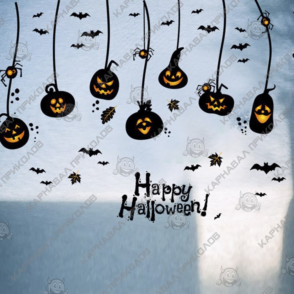 Интерьерная наклейка HL Тыква Лампа SK9094 60х90см - это быстрый способ классно украсить свой дом. Интернет - магазин Карнавал Приколов предлагает Вам купить интерьерные наклейки хоррор тематики, которые идеально подойдут на кухню, спальню, гостиную. Украшение на стену оценят в комнате страха или декора хэллоуин. Как 3D наклейка клеится на стену ? Способ поклейки очень прост. Для начала необходимо очистить поверхность, на которую необходимо наклеить. После снимаем пленку и переносим рисунок на стену или другую плоскость рукой или ветошью. На какие поверхности можно клеить интерьерную наклейку ? Поклейка возможна на любую ИДЕАЛЬНО ГЛАДКУЮ ГЛЯНЦЕВУЮ поверхность, например : стена окрашенная глянцевой краской без каких-либо рельефов ( в краске не должно быть мелового компонента), стекло, зеркало, лакированные поверхности, гладкий пластик. На обои клеить НЕЛЬЗЯ. Ухаживать за стикерами на стену также достаточно легко, для этого необходимо лишь иногда протирать их влажной губкой или тряпкой. Яркость и насыщенность наклеек не меняется с течением времени, кроме того они абсолютно устойчивы к влажности.