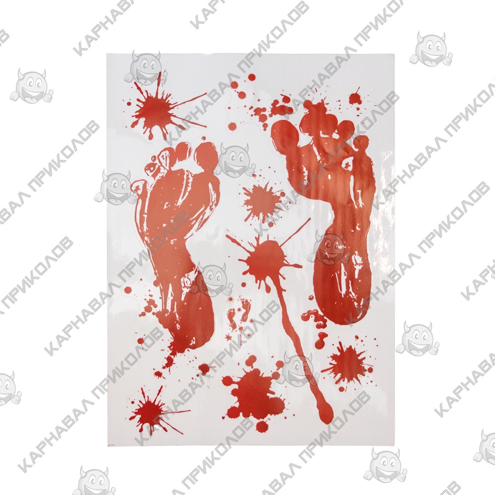 Интерьерная наклейка HL Кровавые следы Ноги 35х25см - это быстрый способ классно украсить свой дом. Интернет - магазин Карнавал Приколов предлагает Вам купить интерьерные наклейки хоррор тематики, которые идеально подойдут на кухню, спальню, гостиную. Украшение на стену оценят в комнате страха или декора хэллоуин. Как 3D наклейка клеится на стену ? Способ поклейки очень прост. Для начала необходимо очистить поверхность, на которую необходимо наклеить. После снимаем пленку и переносим рисунок на стену или другую плоскость рукой или ветошью. На какие поверхности можно клеить интерьерную наклейку ? Поклейка возможна на любую ИДЕАЛЬНО ГЛАДКУЮ ГЛЯНЦЕВУЮ поверхность, например : стена окрашенная глянцевой краской без каких-либо рельефов ( в краске не должно быть мелового компонента), стекло, зеркало, лакированные поверхности, гладкий пластик. На обои клеить НЕЛЬЗЯ. Ухаживать за стикерами на стену также достаточно легко, для этого необходимо лишь иногда протирать их влажной губкой или тряпкой. Яркость и насыщенность наклеек не меняется с течением времени, кроме того они абсолютно устойчивы к влажности.
