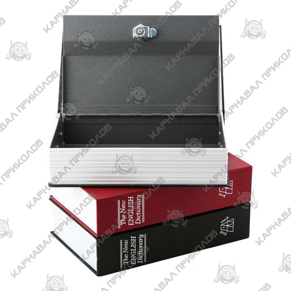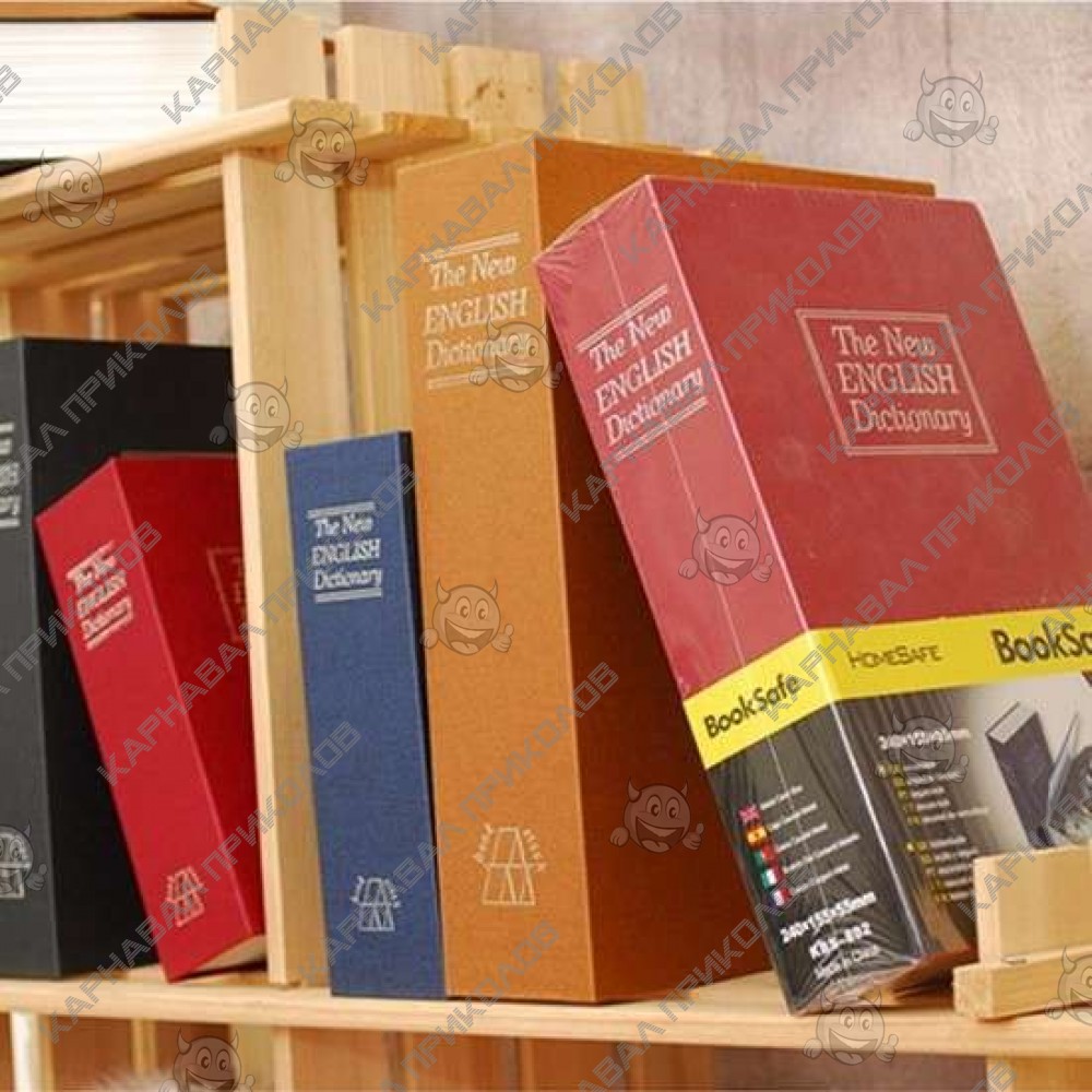 Книга сейф (11см) Словарь бордовый – стильный, аристократический подарок для тех, кто любит читать и считать! Переданный нам от деда-прадеда способ хранить свои сбережения в книгах нашел свое современное воплощение! Оригинальный сейф в виде книги, книга-тайник, надежно будет сохранять ценности своего хозяина, находясь в книжном шкафу с обычными книгами. Металлическая коробка замаскирована под обычный словарь, облицована пластиковой обшивкой с тесными буквами. Каркас книги-обманки обработан таким образом, чтобы создать иллюзию множества страниц, соединённых вместе. Выглядит очень реалистично. В ряду на полке с другими книгами практически не отличить от обычной книги. Книга-сейф Словарь – отличный подарок для ваших друзей, родных, коллег и начальства. Можете подарить такой подарок на день рождения или оригинально вручить на свадьбу молодоженам. В комплекте с книгой поставляется 2 ключа.
