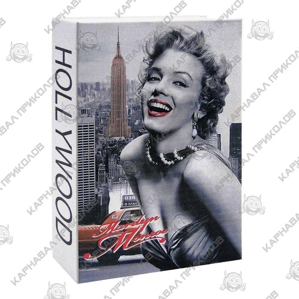 Книга сейф (18см) Голливуд – стильный, аристократический подарок для тех, кто любит читать и считать! Переданный нам от деда-прадеда способ хранить свои сбережения в книгах нашел свое современное воплощение! Оригинальный сейф в виде книги, книга-тайник, надежно будет сохранять ценности своего хозяина, находясь в книжном шкафу с обычными книгами. Металлическая коробка замаскирована под обычную книгу, облицована пластиковой обшивкой с принтом голивуда и портретом Мерлин Монро. Внутренние размеры позволят спрятать пачки купюр толщиной до 5 см, а также хранить документы размером 17х10см. Каркас книги-обманки обработан таким образом, чтобы создать иллюзию множества страниц, соединённых вместе. Выглядит очень реалистично. В ряду на полке с другими книгами практически не отличить от обычной книги. Книга сейф – отличный подарок для ваших друзей, родных, коллег и начальства. Можете подарить такой подарок на день рождения или оригинально вручить на свадьбу молодоженам. В комплекте с книгой поставляется 2 ключа.