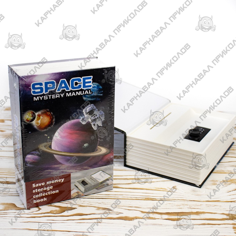 Книга сейф (18см) Космос Space – это не только оригинальный аксессуар, но и практичное решение для хранения ваших секретов и ценностей. С размером 18х12,7х5.5 см, книга идеально впишется в вашу библиотеку или на полку, не привлекая внимания. Глубина сейфа составляет 5 см, что позволяет удобно хранить деньги, ключи, ювелирные изделия или другие мелкие предметы. Закрывается книга на надежный кодовый замок, что обеспечивает дополнительную безопасность и защиту ваших ценностей. Переданный нам от деда-прадеда способ хранить свои сбережения в книгах нашел свое современное воплощение! Оригинальный сейф в виде книги, книга-тайник, надежно будет сохранять ценности своего хозяина, находясь в книжном шкафу с обычными книгами. Металлическая коробка замаскирована под обычную книгу о необъятном космосе, облицована пластиковой обшивкой с тесными буквами. Каркас книги-обманки обработан таким образом, чтобы создать иллюзию множества страниц, соединённых вместе. Выглядит очень реалистично. В ряду на полке с другими книгами практически не отличить от обычной книги. Книга сейф (18см) Космос Space – отличный подарок для ваших друзей, родных, коллег и начальства. Можете вручить такой подарок на день рождения или оригинально вручить на свадьбу молодоженам.