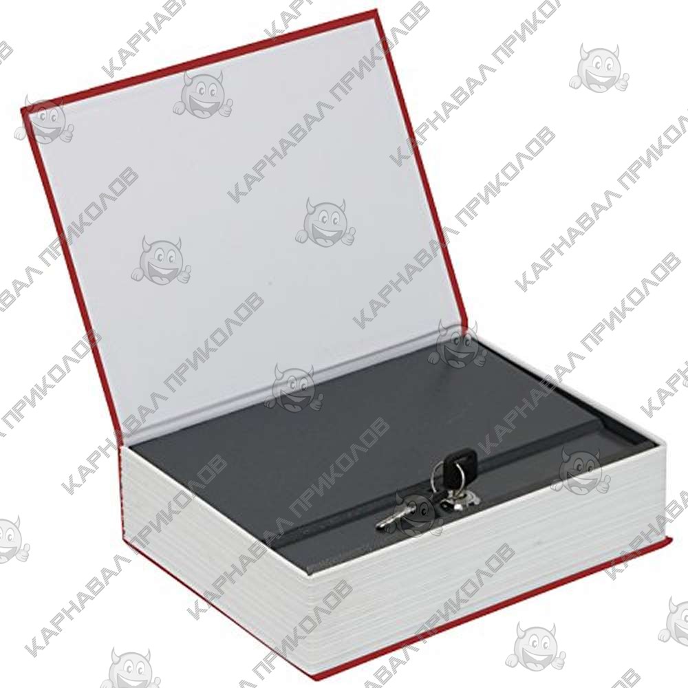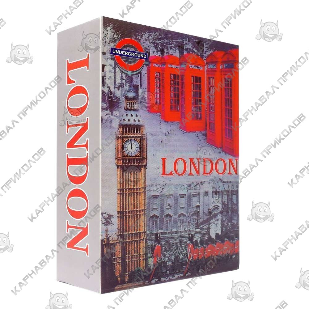 Книга сейф (18см) Лондон – стильный, аристократический подарок для тех, кто любит читать и считать! Переданный нам от деда-прадеда способ хранить свои сбережения в книгах нашел свое современное воплощение! Оригинальный сейф в виде книги, книга-тайник, надежно будет сохранять ценности своего хозяина, находясь в книжном шкафу с обычными книгами. Металлическая коробка замаскирована под обычную книгу, облицована пластиковой обшивкой с пейзажем Лондона и надписью LONDON. Внутренние размеры позволят спрятать пачки купюр толщиной до 5 см, а также хранить документы размером 17х10см. Каркас книги-обманки обработан таким образом, чтобы создать иллюзию множества страниц, соединённых вместе. Выглядит очень реалистично. В ряду на полке с другими книгами практически не отличить от обычной книги. Книга сейф – отличный подарок для ваших друзей, родных, коллег и начальства. Можете подарить такой подарок на день рождения или оригинально вручить на свадьбу молодоженам. В комплекте с книгой поставляется 2 ключа.