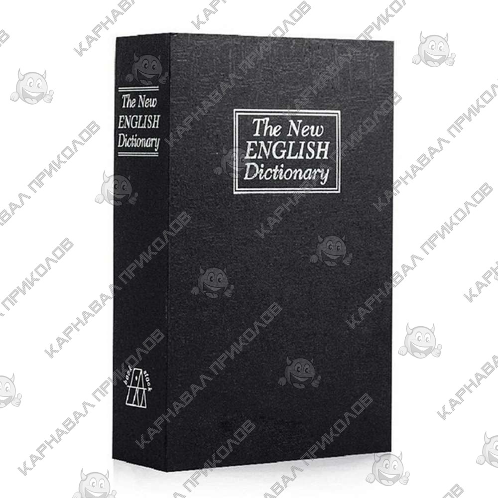 Книга сейф (18см) Словарь черный – стильный, аристократический подарок для тех, кто любит читать и считать! Переданный нам от деда-прадеда способ хранить свои сбережения в книгах нашел свое современное воплощение! Оригинальный сейф в виде книги, книга-тайник, надежно будет сохранять ценности своего хозяина, находясь в книжном шкафу с обычными книгами. Металлическая коробка замаскирована под обычный словарь, облицована пластиковой обшивкой с тесными буквами. Каркас книги-обманки обработан таким образом, чтобы создать иллюзию множества страниц, соединённых вместе. Выглядит очень реалистично. В ряду на полке с другими книгами практически не отличить от обычной книги. Книга-сейф Словарь – отличный подарок для ваших друзей, родных, коллег и начальства. Можете подарить такой подарок на день рождения или оригинально вручить на свадьбу молодоженам. В комплекте с книгой поставляется 2 ключа.