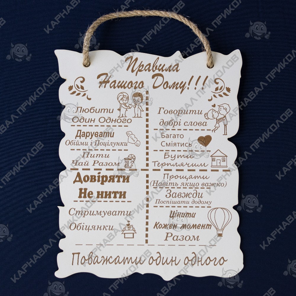 Деревянный постер ПРАВИЛА НАШОГО ДОМУ