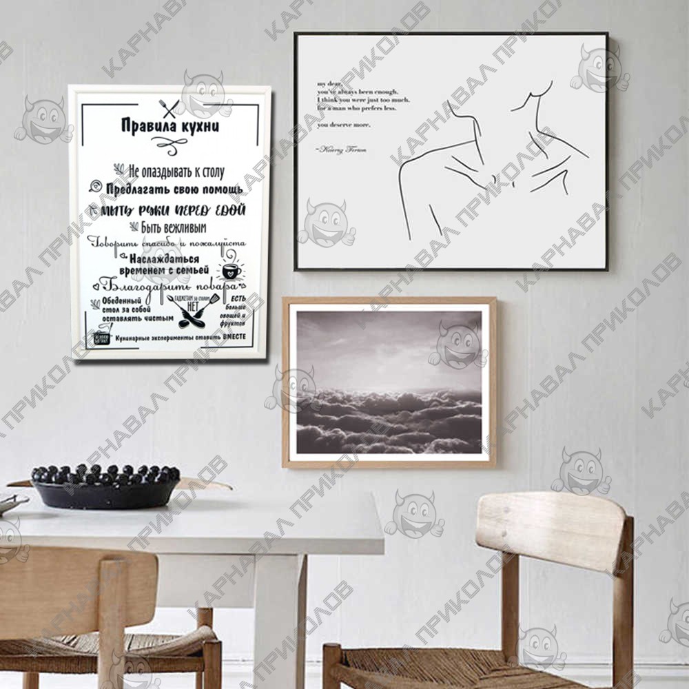Постер мотиватор 56002 ПРАВИЛА КУХНИ А4 - стильный постер в рамке. Это прекрасный и незабываемый подарок на любой праздник. Содержит 11 главных правил поведения на кухни. Например – мыть руки перед едой, наслаждаться временем и семьей, есть больше овощей и фруктов и многие другие. Постер можно повесить на стену либо любую другую поверхность, поставить стол. Мотивирующий постер напечатан на матовой фотобумаге и вставляется в лёгкую рамку со стеклом, задником и креплениями на стену. Оптовый интернет магазин Карнавал Приколов предлагает купить интересные и оригинальные подарки по доступным ценам. Ваш подарок будет радовать своего нового обладателя еще очень долго, даря улыбку каждый день!
