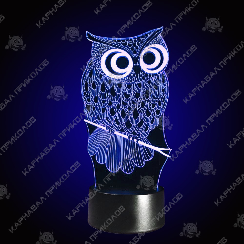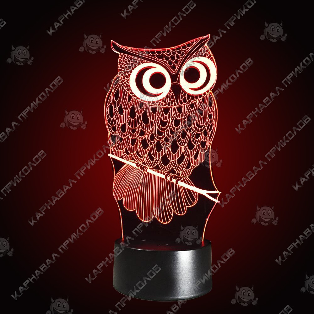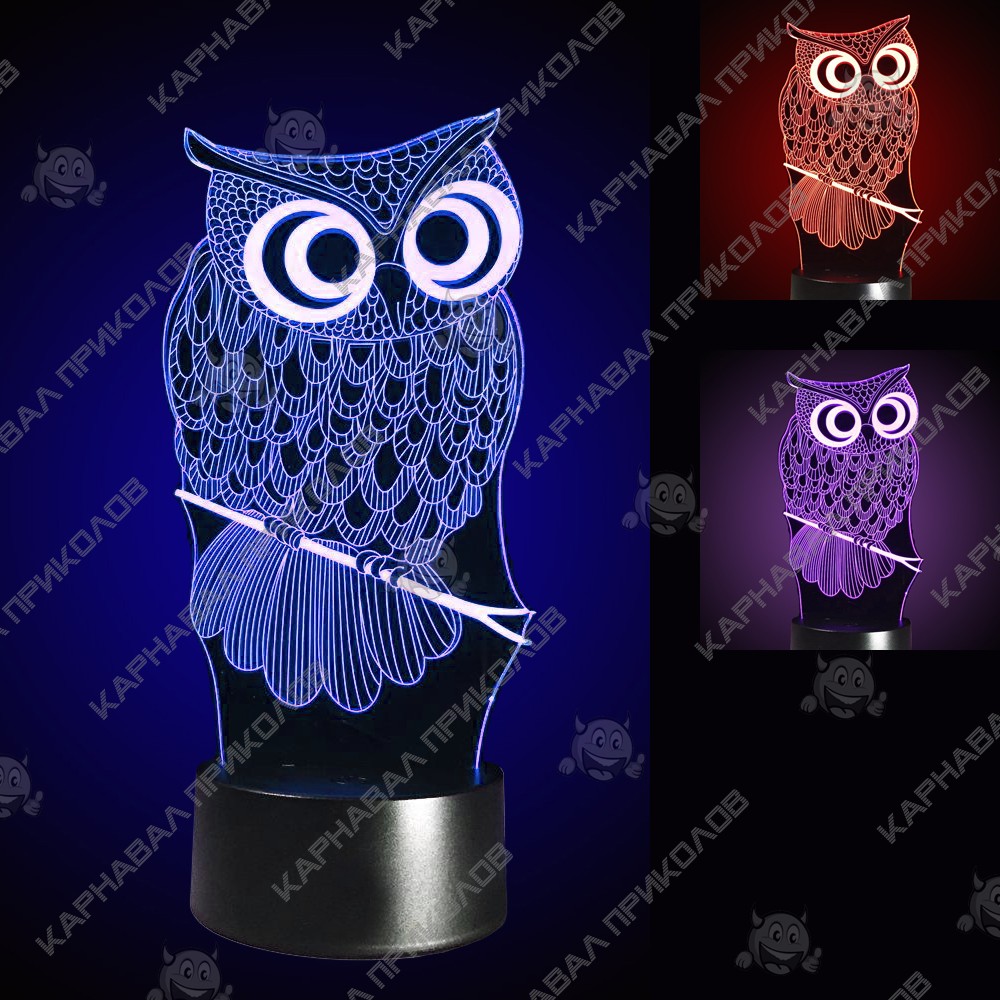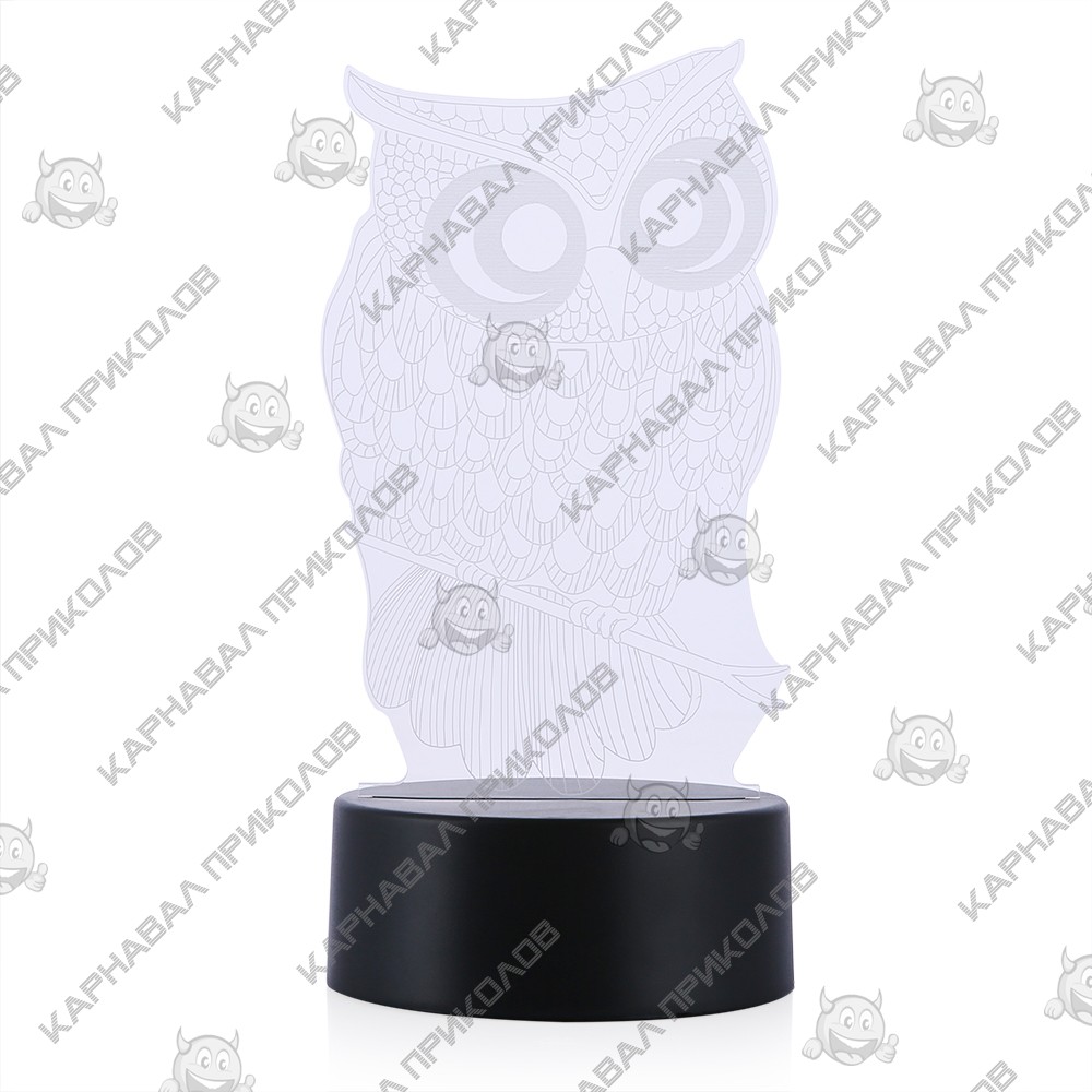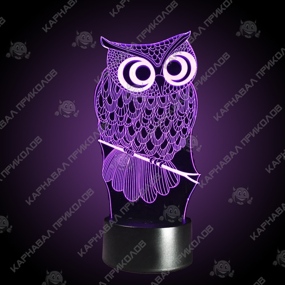 Хотите удивить родных, друзей или коллег оригинальным подарком? Купите им 3D-светильник в нашем интернет-магазине Карнавал Приколов. Классические уже поднадоели многим, а ведь современная индустрия предлагает такие варианты, которые гармонично впишутся практически в любой интерьер, придадут ему изюминки, украсят и наполнят пространство сказочной атмосферой. В выключенном состоянии 3D Светильник Сова выглядит красиво, но настоящее волшебство начинается, когда его включают. Благодаря тому, что подсвечивается специальная пластина, создается 3D-проекция. Маленькие дети будут просто в восторге от такого необычного подарка, хотя взрослые радуются домашнему волшебству не меньше. Подарок 3D светильник подойдет семьям, в которых есть дети любого возраста. Творческим личностям. Влюбленным парам, которые только начинают жить вместе и любят устраивать романтические вечера. Светильник светиться синим и красным, малиновым цветом. В комплект входит: подставка для светильника, шнур питания, подключающийся в розетку и фигурка из акрилового листа и упаковка. Фигурка, установленная на основу, представляет собой плоский и прозрачный акриловый лист толщиной 5 мм со специально нанесенной гравировкой ( который защищен от механических повреждений плотной бумагой на клеевой основе, которую необходимо снять перед первым включением светильника), которая подсвечивается снизу светодиодной лентой. Именно так с виду обычное стекло превращается в реалистично объемную картинку. Такой светильник станет оригинальным подарком любимому человеку, другу или ребенку. Работает от сети 220V.