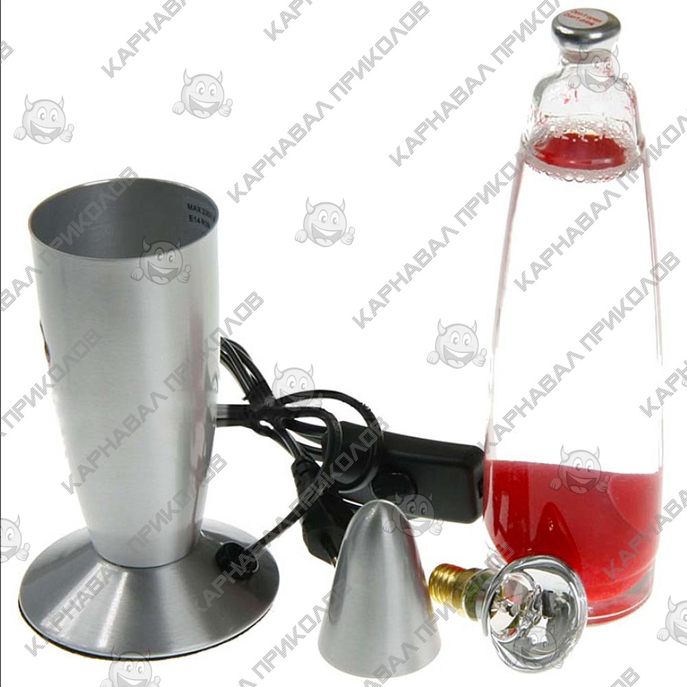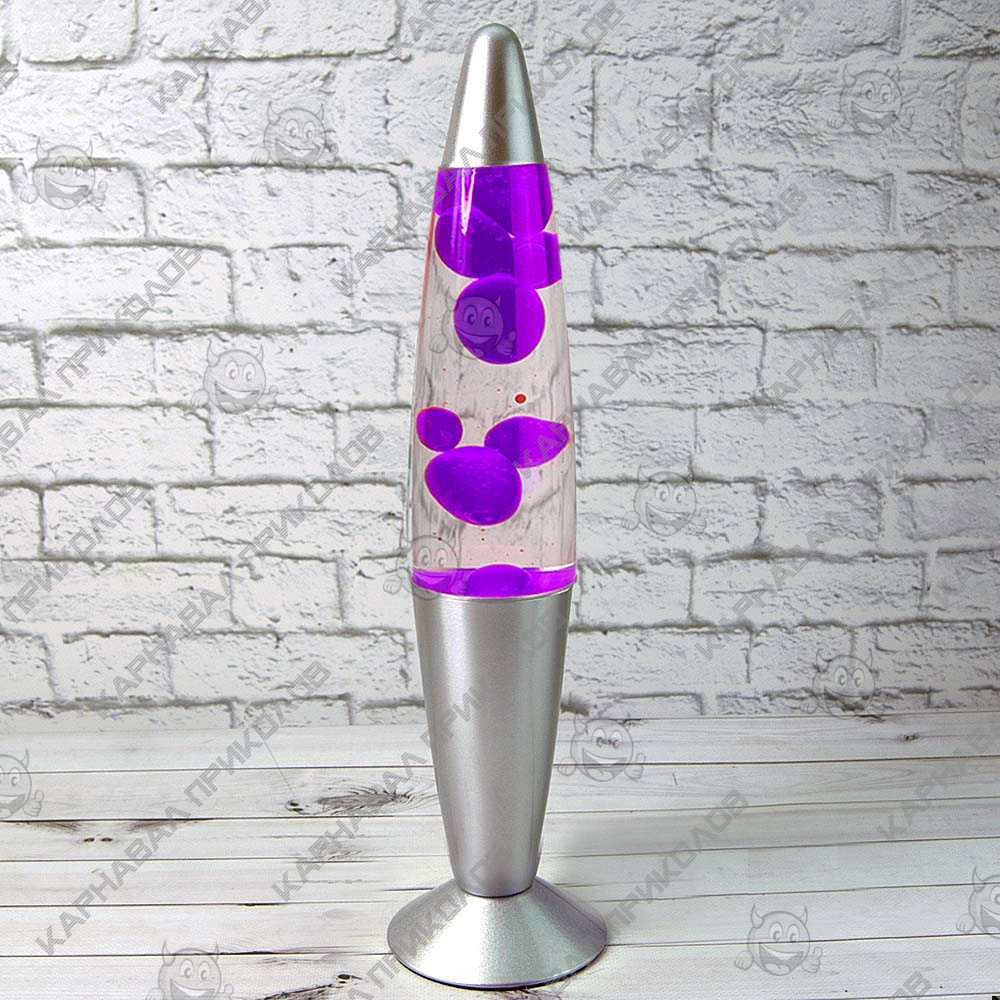 Творческим людям необходимо вдохновение. И каждый находит его в различных вещах. Если Вы ищете то, что будет Вас вдохновлять и давать Вам идеи для творчества. Интернет-магазин Карнавал Приколов представляет Вам очень необычный аксессуар для Вашей комнаты или кабинета Лава лампа с парафином (34см) сиреневая. Лава лампа с парафином сиреневая - это очень необычный светильник ночник прекрасный источник для Вашего вдохновения. Лава лампа выполнена в виде колбы, в которой находится прозрачное масло и цветной парафин сиреневого цвета. Эту самую колбу надо поместить на подставку, в которой находится лампочка, которая подсвечивает и начинает нагревать парафин. Может кто-то не знает, но в холодном состоянии парафин тяжелее масла и тем самым он лежит на дне колбы, а при нагревании становится легче и начинает плавать по колбе. Лампа представлена в разных цветовых гаммах. Такая лампа завораживает и даже гипнотизирует, заставляя смотреть на прекрасный эффект. Так же если после долгого рабочего дня Вы хотите расслабиться и просто посидеть в кресле и отдохнуть, то Лава лампа сделает Ваш вечер намного приятнее, тот эффект который произведет лампа на Вас, позволит Вам насладиться отдыхом на полную. Светильник работает от розетки 220V. Для большего срока службы изделия время работы разогретой лампы не должно превышать 8-10 часов. При нагревании снизу 25 или 30-ваттной лампочкой, парафин начинает расширятся, нагревшись он становится менее плотным чем жидкость в которой он находится и это заставляет его подниматься. Для разогрева парафина понадобится около часа, постоянно держать включенной лампу нельзя. Рекомендуемое время работы лампы не более 3-4 часов на максимальной яркости и нагреве, после достижения активного движения - интенсивность нагрева/яркости следует уменьшить, для обеспечения поддержания отпимальной температуры. В комплектацию входит: стеклянная колба с парафином и маслом (жидкость бесцветная, а парафин цветной), пластиковая подставка со шнуром питания с реле (для регуляции интенсивностит нагрева), подключающимся в розетку и крышка, маленькая лампа накалывания.