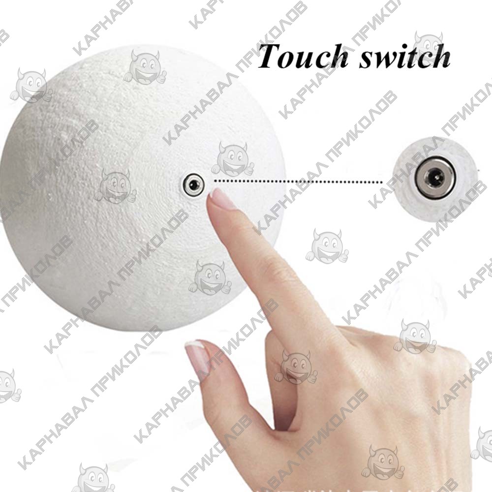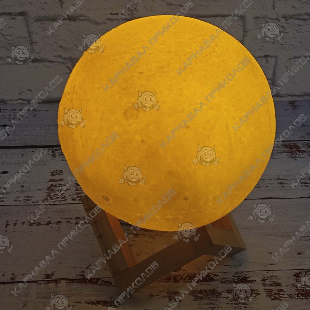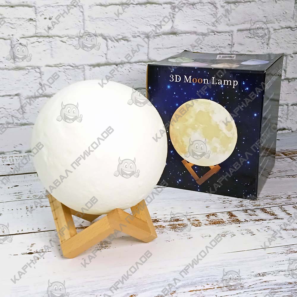 Хотите удивить ребенка, оригинальным подарком? Купите ему Ночник-светильник Луна Magic 3D Moon в нашем интернет-магазине Карнавал Приколов. Классические уже поднадоели многим, а ведь современная индустрия предлагает такой вариант, который гармонично впишется практически в любой интерьер, придаст ему изюминки, добавит теплую атмосферу и украсит и наполнит пространство сказочной атмосферой. При зарядке шар становится красным, а затем потухает. Врямя зарядки 3D лампы Лунна 2-4 часа. Светодиодный светильник в виде луны светится холодным белым, теплым белым и оранжевым цветом. Яркость регулируется при длительном нажатии на сенсорное металлическое кольцо. Для изменения цвета свечения лампы, включения/выключения коснитесь металлического кольца в нижней части лунной лампы или слегка ударьте по лампе Луна, чтобы переключить цвет света. Светодиодная лампа не нагревается в процессе использования, ее можно класть в кровать, носить в руках, или оставить на мебели. Комплектация: светильник Луна, подставка, USB - кабель, инструкция по эксплуатации. Поставляется без пульта. Луна выполнена из PLA пластика (экологически чистый пластик), а подставка из дерева. Адаптер для питания не входит в комплектацию от производителя, при необходимости можно дополнительно приобрести.
