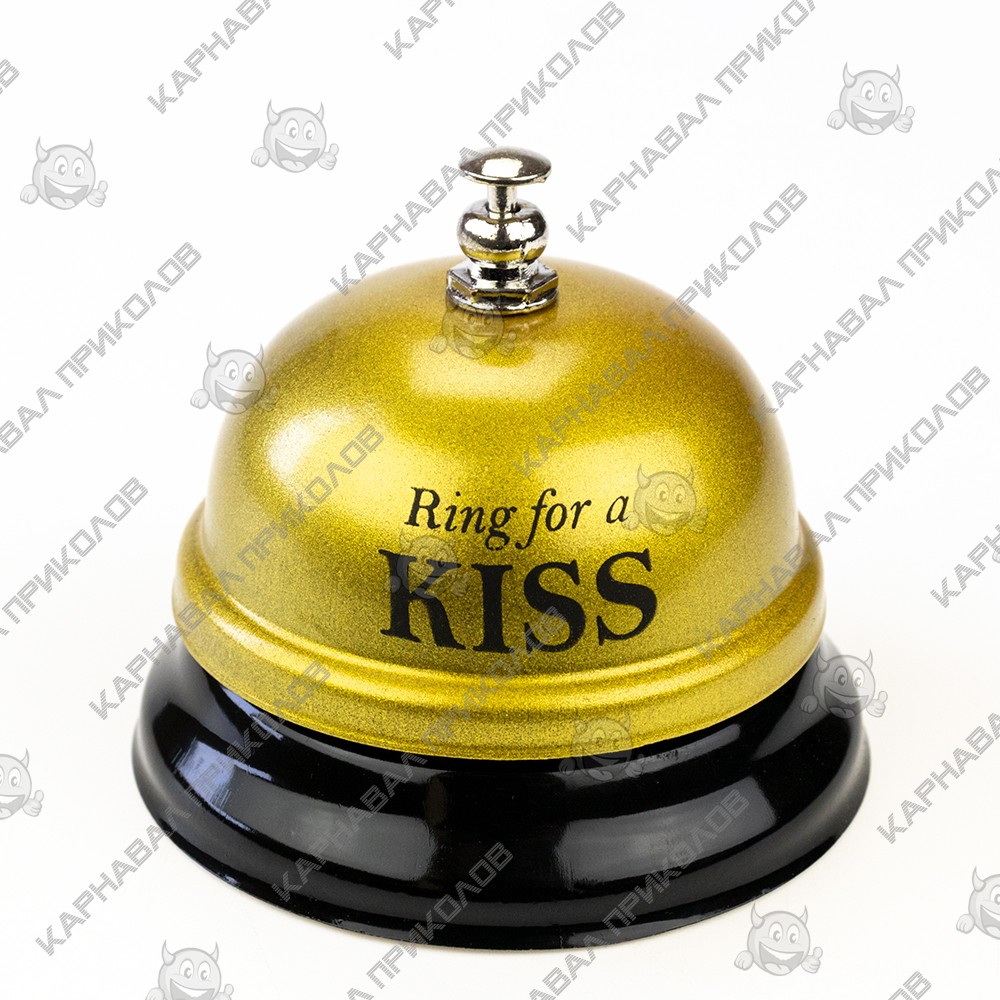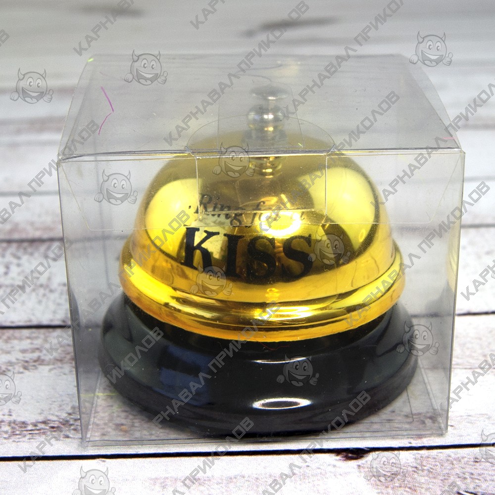 Звонок настольный KISS (золотой) - Позови любовь одним прикосновением! Ищете способ добавить романтики, игры и веселья в ваши отношения? Этот стильный настольный звонок – идеальный помощник для тех, кто хочет получить порцию нежности без лишних слов. Один звонок и поцелуй уже на пути к вам! Изготовлен настольный звонок из прочного металла с сияющим и привлекающим золотистым покрытием. Классическая черная подставка обеспечивает стойкость на столе, полке или прикроватной тумбе. На корпусе размещена четкая и стильная надпись Ring for a KISS (Позвони, чтобы получить поцелуй), которая не оставляет места для сомнений. При нажатии на кнопку вызов выдает приятный и звонкий сигнал, который мгновенно известит. Используйте его как часть игры для романтического вечера, чтобы добавить легкость и флирт вашему общему времени. Идеальный вариант подарка ко Дню влюбленных (14 февраля), годовщине отношений или просто как приятный сюрприз без повода. Прекрасный прокольный подарок для друзей-молодых с хорошим чувством юмора. Этот аксессуар вызывает искренние улыбки, помогает расслабиться и создает атмосферу тепла и близости дома.