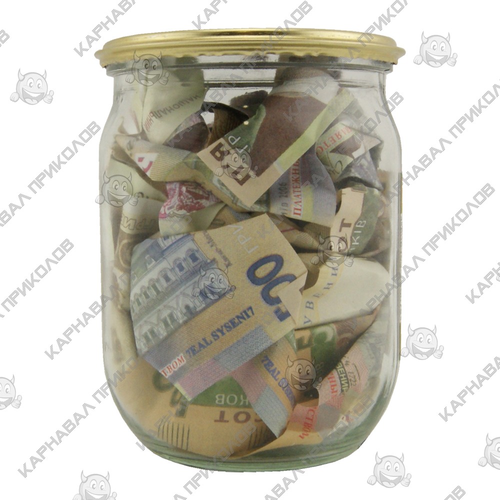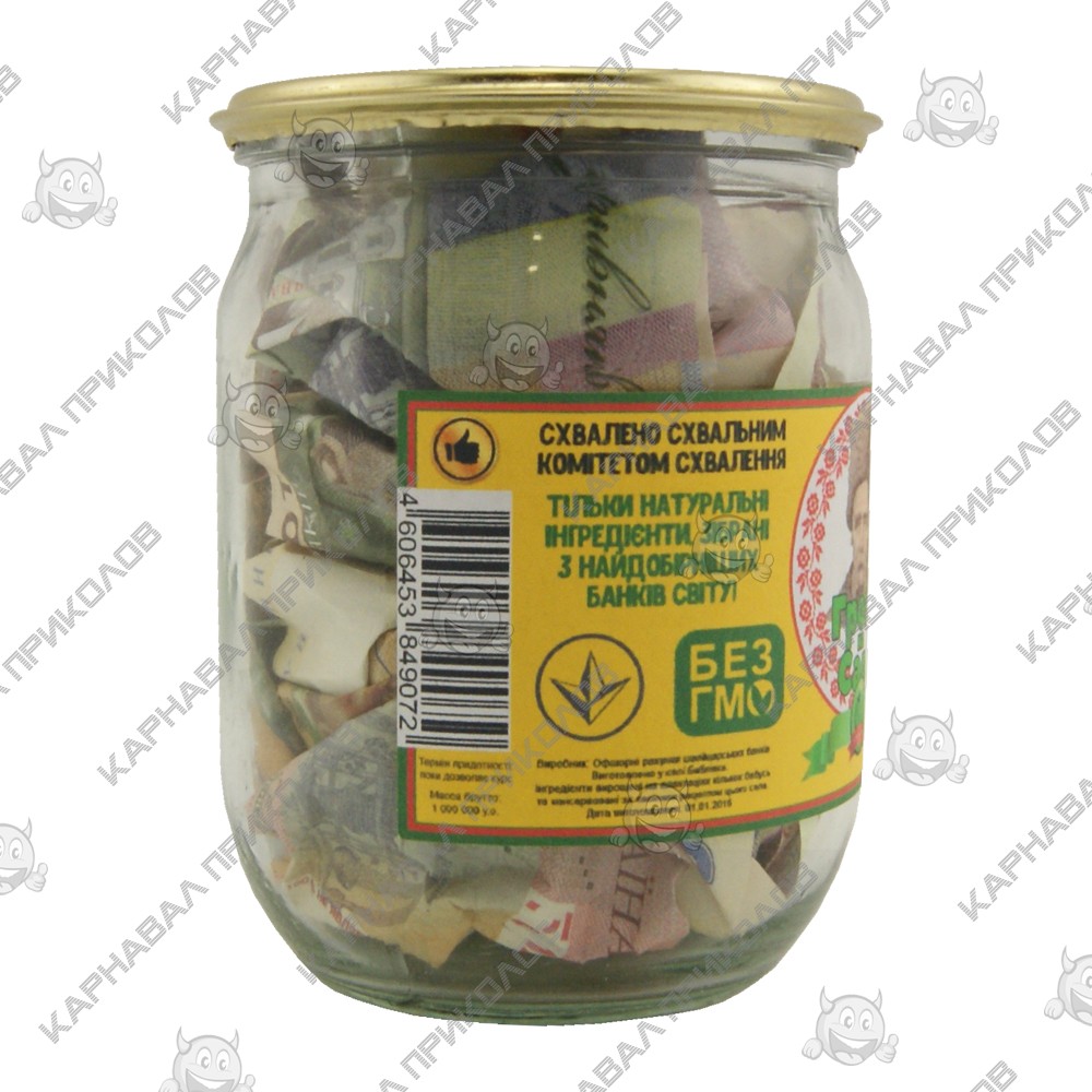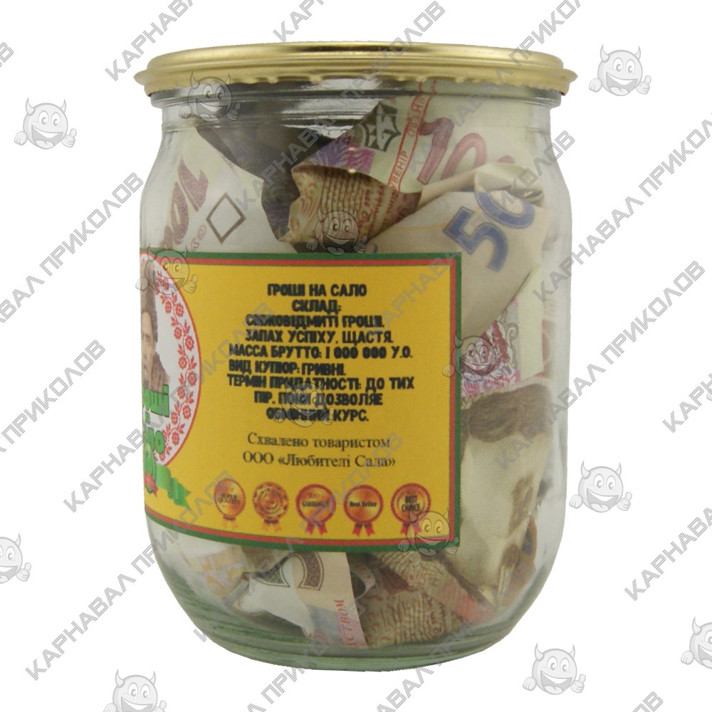 Хотите пожелать человеку изобилия по-украински? Денежный подарок Гроші на сало от Карнавал Приколов – это воплощение народного юмора и пожелания достатка! Эта банка, закатанная на черный день, наполнена сувенирными украинскими гривнами. Этикетка выполнена в традиционном стиле, с изображением козака в шапке и надписью Гроші на сало, что символизирует самые ценные запасы и благополучие. Идеальный презент для тех, кто ценит практичность и украинские традиции. Ищете по-настоящему необычный и запоминающийся подарок, который вызовет улыбку и поднимет настроение? Вам поможет Законсервированное Богатство. Денежный подарок Гроші на сало – это остроумный и креативный способ вручить деньги или просто пожелать финансового благополучия. Подарок представляет собой стеклянную банку, герметично закатанную металлической крышкой, как настоящая консервация, и наполненную сувенирными купюрами. Оригинальная этикетка с юмористическим дизайном завершает образ, делая этот сувенир идеальным для любого праздника! Отличный выбор для дней рождений, свадеб, корпоративных вечеринок или просто как шуточный презент с глубоким смыслом.