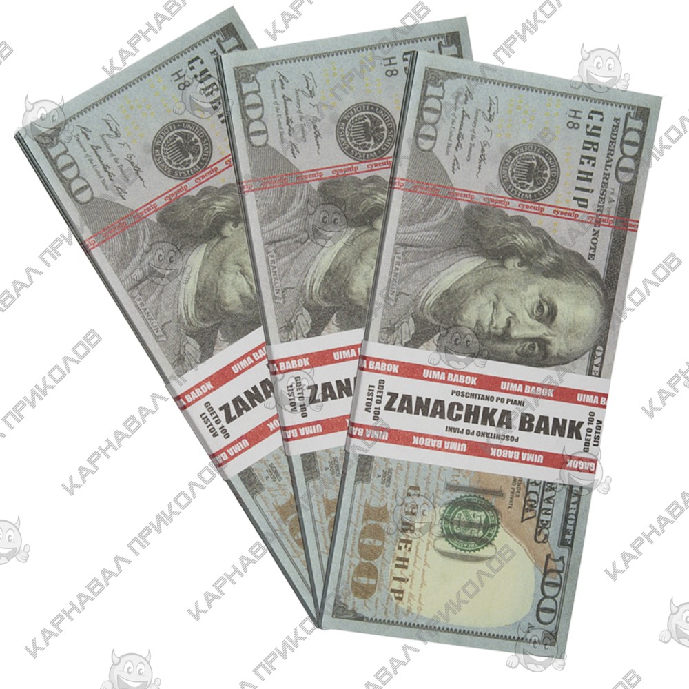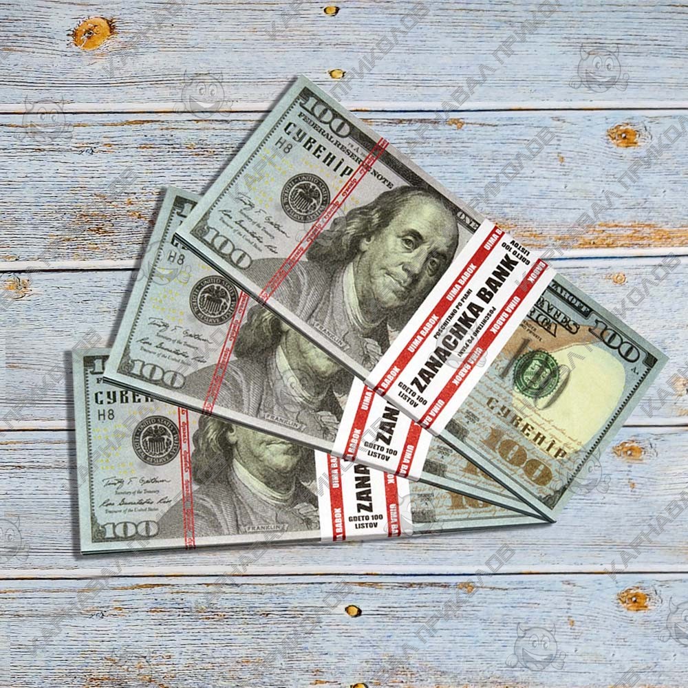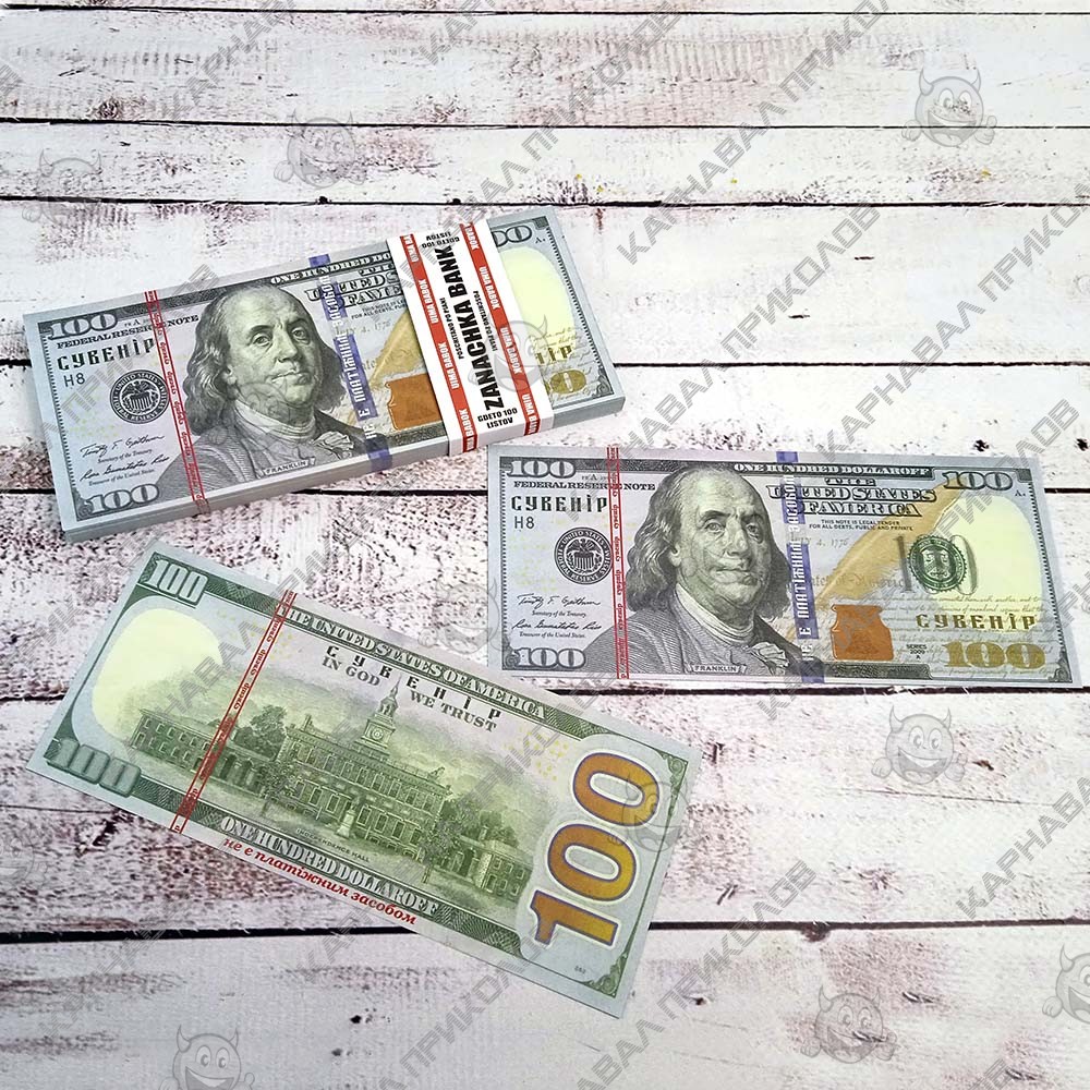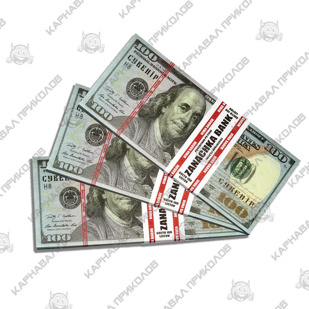 Сувенирные подарочные деньги Пачка денег 100 долларов выполнены из бумаги с двухсторонней качественной печатью. На Купюре присутствует надпись Сувенир. В пачке 80 купюр. Сувенирная пачка долларов от заначка банка идеально подходить для проведения свадебного обряда выкупа невесты, провидения различных конкурсов на мероприятиях, для наполнения подарков – приколов. Вы можете купить деньги пачками оптом от производителя. Интернет магазин Карнавал Приколов предлагает купить оптом интересные и оригинальные подарки по низким ценам, а также Вы можете оформить заказ на сайте и задать любые интересующие вопросы менеджеру, заказав звонок на нашем сайте.