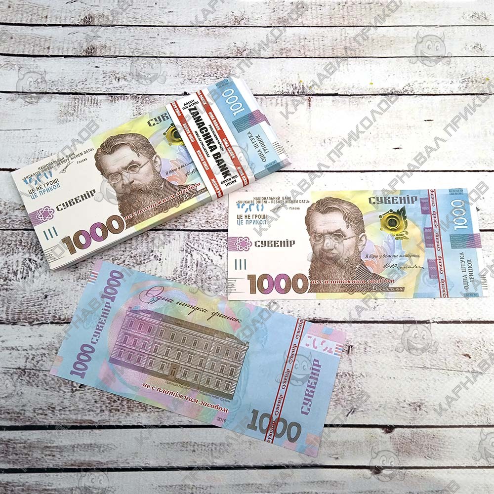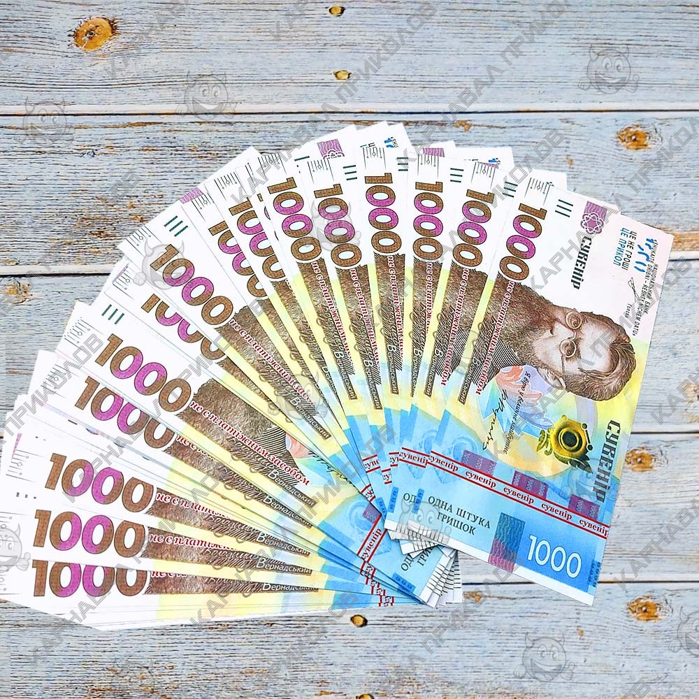 Сувенирные подарочные деньги Пачка денег по 1000 гривен выполнены из бумаги с двухсторонней качественной печатью. На Купюре присутствует надпись Сувенир. В пачке 80 купюр. Сувенирная пачка гривен от заначка банка идеально подходить для проведения свадебного обряда выкупа невесты, провидения различных конкурсов на мероприятиях, для наполнения подарков – приколов. Вы можете купить деньги пачками оптом от производителя. Интернет магазин Карнавал Приколов предлагает купить оптом интересные и оригинальные подарки по низким ценам, а также Вы можете оформить заказ на сайте и задать любые интересующие вопросы менеджеру, заказав звонок на нашем сайте.