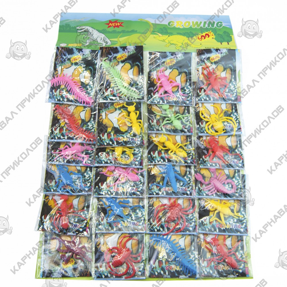 Для юного любителя биологии такая развивающая игрушка – неподдельная находка! Порадуйте ребенка оригинальным подарком и вместе понаблюдайте за быстро растущим в воде животным. Просто купите и поместите фигурку из упаковки в прозрачную емкость с холодной водой и наблюдайте. Желательно использовать только холодную воду для растущих фигурок. Спустя некоторый период времени – животные начинают расти в объеме до 6 раз от первоначального! Максимальные размеры достигаются в течении 72 часов. Выращивать игрушку самим – это потешно и познавательно! Секрет роста заключается в гидрогеле (Орбиз), который входит в состав изделия. В первоначальном (сухом) виде игрушка растушка напоминает пластмассового или резинового зверька. Игрушку можно использовать несколько раз. При высыхание фигурка уменьшается в размере. Только учтите, что при каждом последующим высушивании игрушка все меньше будет увеличиваться при попадании в воду. Комплектация: 1 фигурка в индивидуальной упаковке.