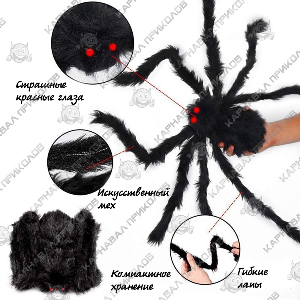 Паук из меха 45см (черный)