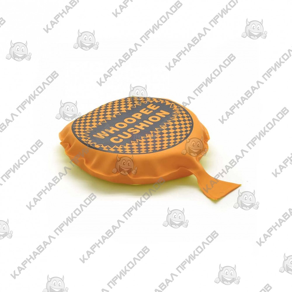 Подушка пердушка средняя 16см (оранжевая) – это классический розыгрыш ставший легендой, который никогда не состарится! В коллекции оригинальных подарков и приколов интернет - магазина Карнавал Приколов этот экземпляр постоянно проделывает настоящие фуроры! Согласитесь, что звук смачного пердежа вгонит в краску кого угодно, так что если план страшной мести обидчику вы вынашиваете давно – купите пердушку Вупи! Вендетта будет совершена абсолютно бескровно и с веселым задором! Подушка пердушка выполнена из резины с круговым боковым швом + поролон внутри, отверстие с металлической заклепкой с обратной стороны, что дает ей самостоятельно наполняться воздухом, и продолговатым клапаном воздухоотводом. Для розыгрыша необходимо поместить подушку на необходимое место отверстием вниз надписью whoopee cushion вверх. В момент того как человек сядет на подушку, продолговатый клапан для выхода воздуха должен оказаться снаружи и не закрываться, ни предметами, ни садящимся. В противном случае выход воздуха будет заблокирован и розыгрыш не удастся (Внимание: при заблокированном клапане для выхода воздуха подушка может повредиться). Подушка наполняется новой партией воздуха автоматически, после того как на нее перестают оказывать давление. Не рекомендуется применять на мягких поверхностях. Незатейливый, но очень смешной розыгрыш, разрядит любую обстановку, а при правильной реакции и хорошем чувстве юмора, способен даже наладить близкие отношения.