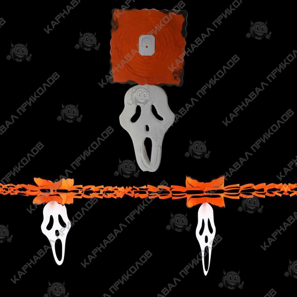Гірлянда - найпопулярніший і найпопулярніший декор на Хелловін. Гірляндою можна прикрасити будь-яку частину інтер'єру, і скрізь вона виглядатиме гармонійно! Класна паперова гірлянда – склеювання на Halloween. Довжина гірлянди: 3 метри. Відмінно підійде для прикраси залів, пабів, ресторанів та нічних клубів на Хелловін. Така прикраса, напевно, запам'ятається Вашим гостям і додасть яскравих фарб у Ваш інтер'єр.