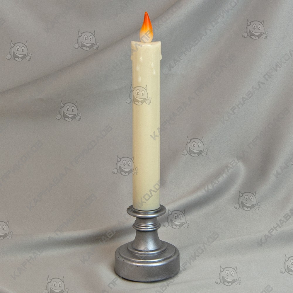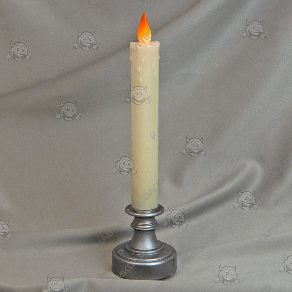 Свічка LED у свічнику L24см (срібна) - декоративне світло, яке ніколи не змінить свою форму і не згорить. А найголовніше не залишить крапель воску на скатертині чи столі. Свічка-лампа LED виготовлена із пластику. За формою імітує свічку в свічнику з потіками воску на основі свічки. В основі свічника розташований відсік для батарейок. Джерело живлення для свічки – 2 батарейки типу ААА (пальчикові батарейки). Для увімкнення/вимкнення на звороті основи необхідно поставити перемикач у положення ON/OFF. Світіння м'яке, ненав'язливе. за рахунок забарвлення пластику у верхній частині та легкого хаотичного миготіння імітується рух вогню. Така свічка стане чудовим елементом декору для створення романтичної атмосфери. Послужить нічником для дитини.