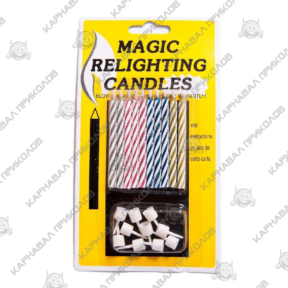 Магічні свічки для торта (уп. 10шт) - розікрасти іменинника дуже просто поставивши в торт магічні свічки. Магія цих свічок полягає в тому, що їх не просто задути. І імениннику доведеться добряче попотіти для цього. Після того, як свічки урочисто вставили в торт і підпалили, дайте їм трохи погоріти та запропонуйте винуватцеві урочистості загадати бажання та задути їх. Варто імениннику задути свічки, як за секунду, вони самі розгораються знову! І так, доки не вигорять повністю. Відмінний варіант, якщо свято відбувається на вулиці. За бажання свічки можна обережно згасити пальцями. У наборі представлено 10 свічок різних кольорів.