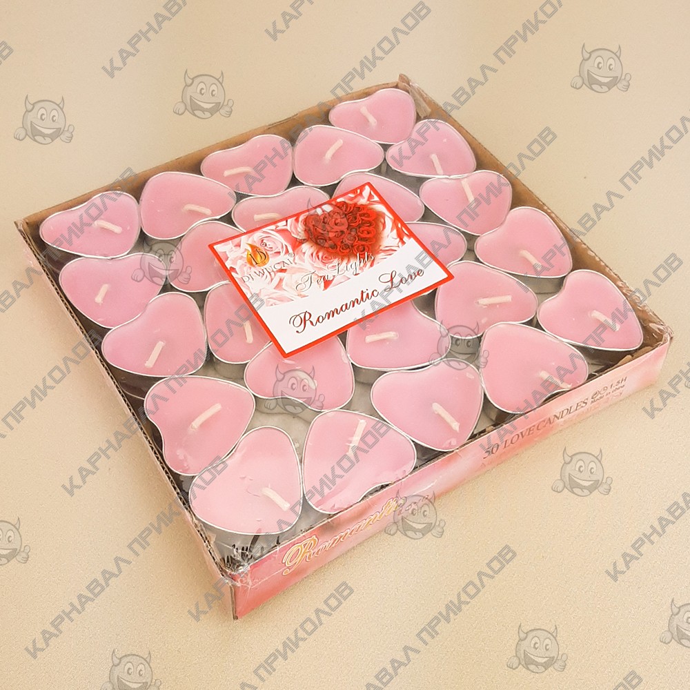 Як легко зробити романтичну атмосферу у домі? Правильно, темрява та свічки. Романтичні свічки створюють інтимне світло, ідеальне щоб провести час зі своєю близькою людиною. Свічки чайні романтичні чудова можливість зізнатися другій половинці у своїх почуттях. Свічки у формі серця відмінний подарунок для друзів і знайомих. Також можна завжди прикрасити свято всіх закоханих чи невелику вечірку. Свічки виготовлені з парафіну залитого в алюмінієвий корпус, тому їх називають свічки-таблетки або чайні свічки. Використовуються свічки Серце в аромалампах, декоративних світильниках, прикрасі інтер'єру та плаваючі свічки. Чайні свічки, що плавають, відрізняються найвищою економічністю, так як парафін не може залишити зону плавлення в алюмінієвому корпусі і згоряє до кінця. У упаковці 50 шт.