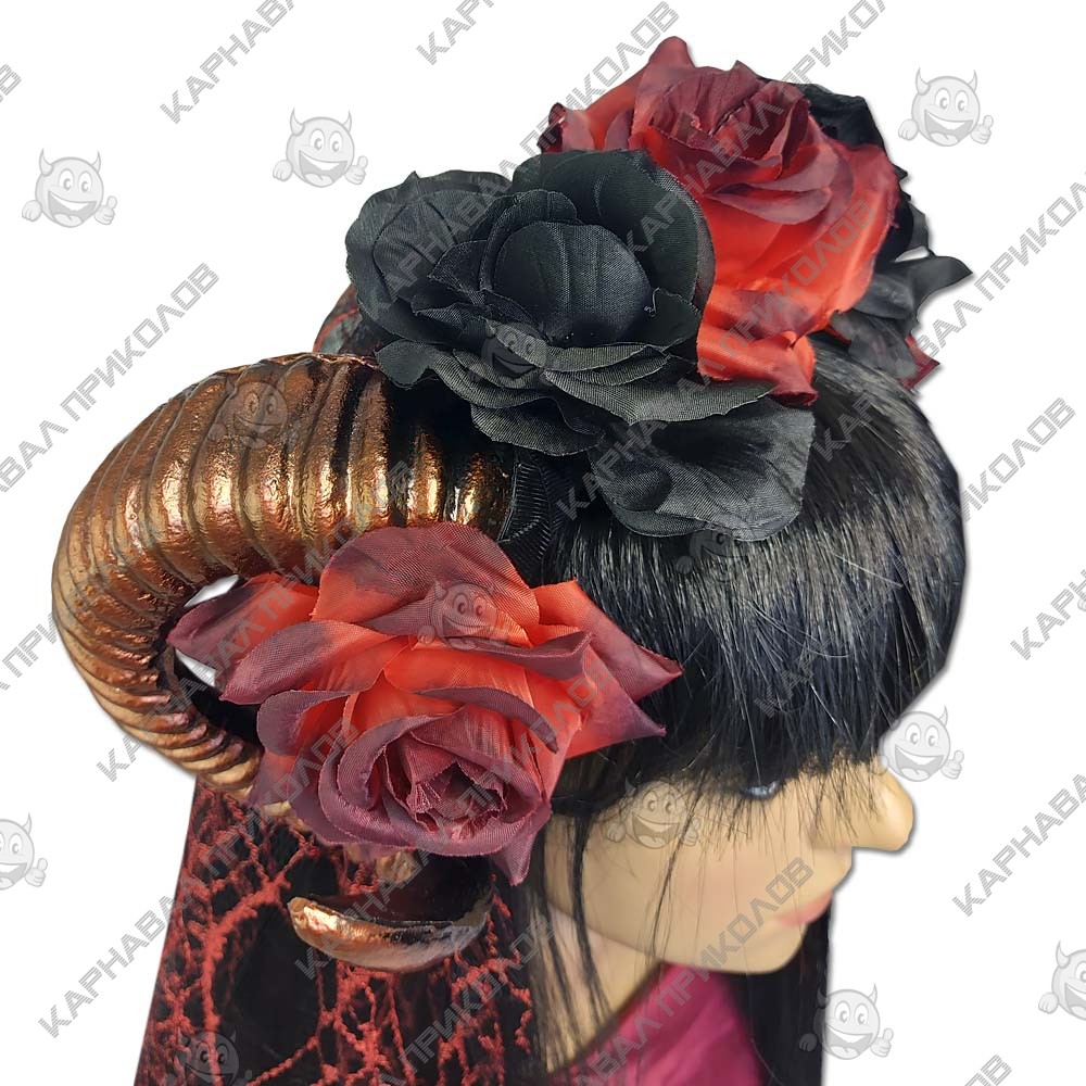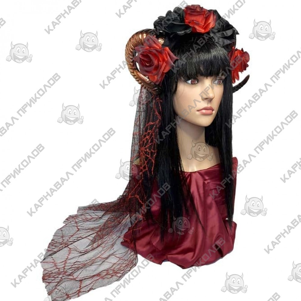 З квітковою окрасою на голову з рогами Ізольда 10233 легко можна створити оригінальний образ. Обідок з квітами у стилі Santa Muerte на Halloween, ефектно доповнить будь-який костюм безбожності. Ефектне поєднання червоних та чорних троянд з великими бронзовими рогами демона доповнене чорною фатою з червоною павутиною з гіпюру, створює загадковий образ Ізольда Сейра. Пропонуємо Вам великий вибір прикрас на голову для складання неповторного образу на День Мертвих в інтернет-магазині Карнавал Приколів. Купивши Прикрасу на голову Хелловін Ви отримуєте не тільки якісний товар, а й 100% позитивних вражень від придбання. Крім аксесуару для волосся, звичайно, бажаний оригінальний костюм, а також специфічний грим, який Ви можете підібрати на нашому сайті.
