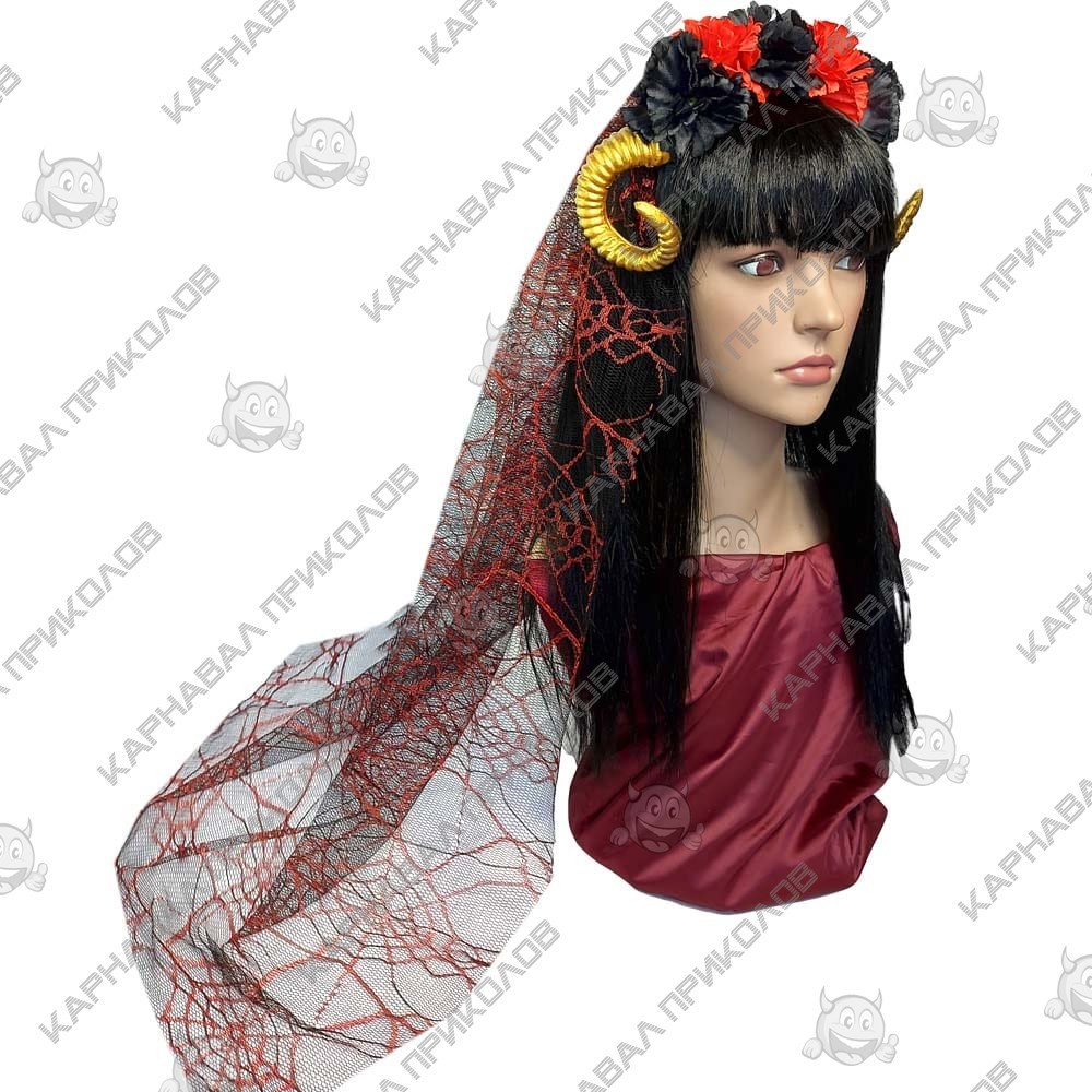 Окраса на голову з рогами Евелін 10242 легко можна створити оригінальний образ. Обідок з квітами у стилі Santa Muerte на Halloween, ефектно доповнить будь-який костюм безбожності. Ефектне поєднання червоних і чорних хризантем з маленькими золотими рогами демона, доповнене чорною фатою з червоною павутиною з гіпюру, створює загадковий образ Евелін Джонсон. Пропонуємо Вам великий вибір прикрас на голову для складання неповторного образу на День Мертвих в інтернет-магазині Карнавал Приколів. Купивши Прикрасу на голову Хелловін Ви отримуєте не тільки якісний товар, а й 100% позитивних вражень від придбання. Крім аксесуару для волосся, звичайно, бажаний оригінальний костюм, а також специфічний грим, який Ви можете підібрати на нашому сайті.