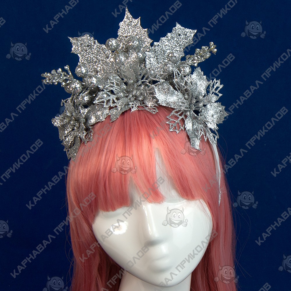 Інтернет магазин Карнавал Приколів пропонує Вам купити оптом по-справжньому зимовий та стильний обідок з гілочками хвої та декоративними квітами, повністю ручної роботи. Чарівна різдвяна прикраса – ошатний аксесуар для фотосесії, корпоративу, створення унікального образу. Срібні пуансетії з хвоєю та новорічними патчами сніжинками виглядають просто чудово та дуже вишукано, а також створюють святковий настрій та ідеально впишуться у новорічні урочистості. Композиція надійно закріплена на пластиковому білому обідку універсального розміру, прикрашеному білою стрічкою репсової. Ця новорічна прикраса на голову зробить Ваше вбрання на будь-якій вечірці і буде родзинкою, як вишенька на торті.
