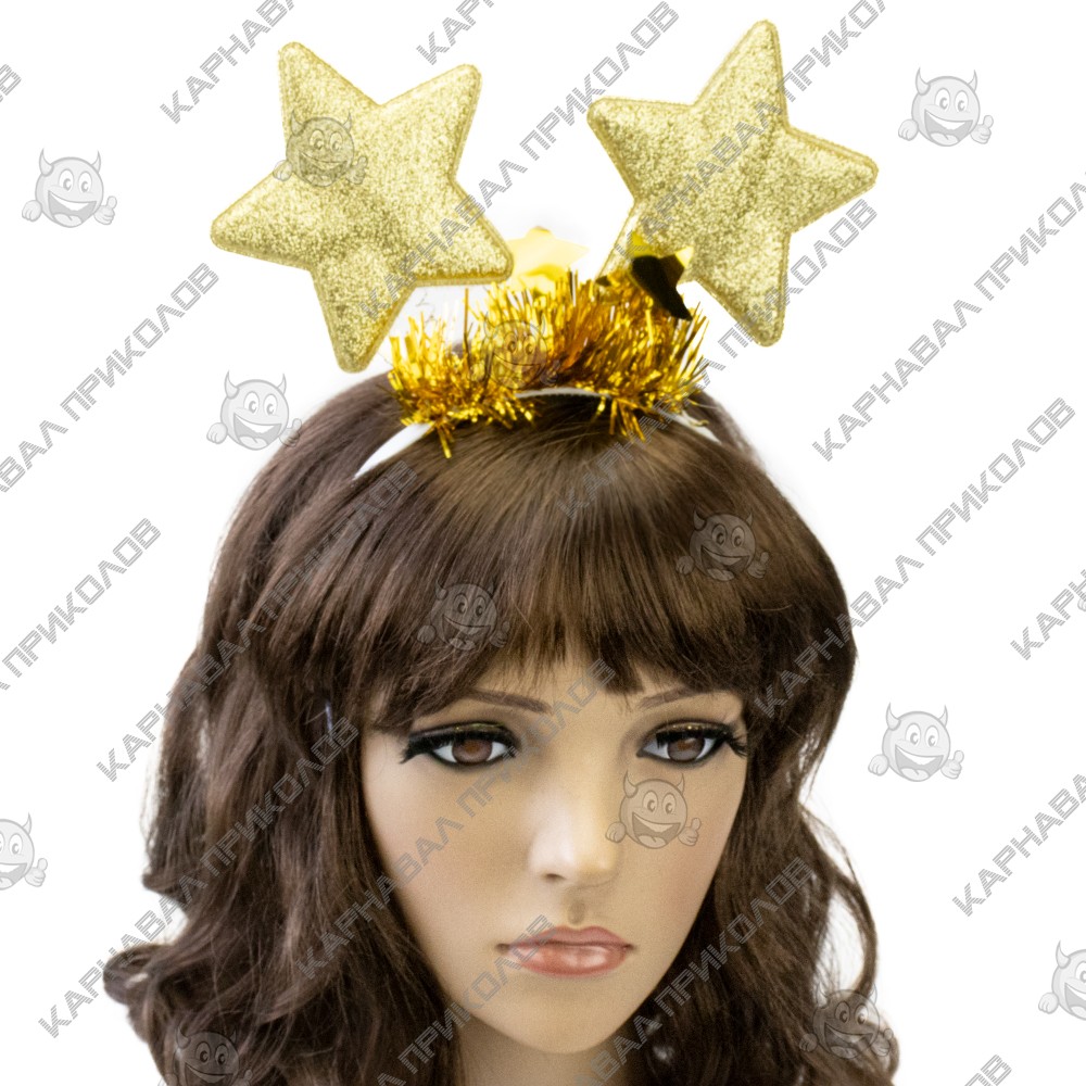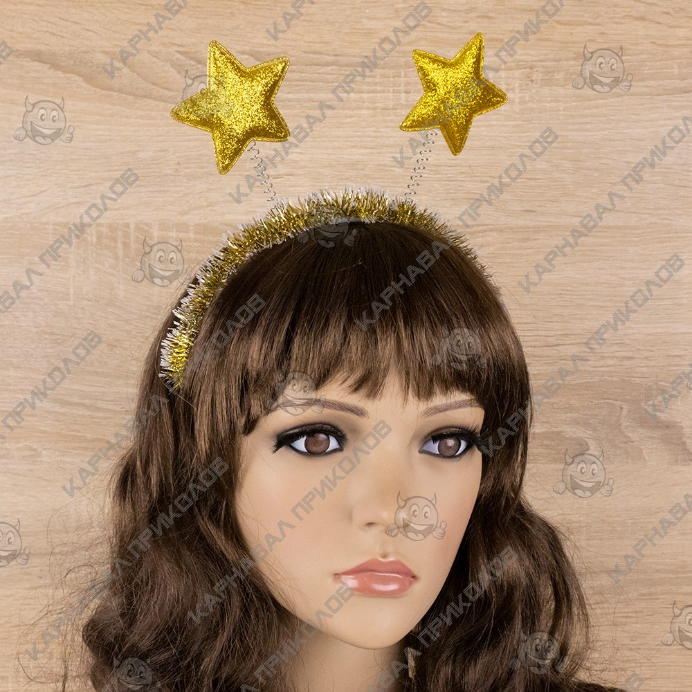 Обідок карнавальний Зірочки на пружинках 13127 (золотий) - яскравий та цікавий аксесуар для свята. Оригінальний задум і форма набула успіху в масових святах. Підходить як для дітей, так і для дорослих. Прекрасно виглядають як на хлопчиках, так і дівчаток. Зірки виконані з поролону, кріпляться на пружинках до обідка. У будь-яке свято в цьому карнавальному обідку ви виглядатимете дуже цікаво.