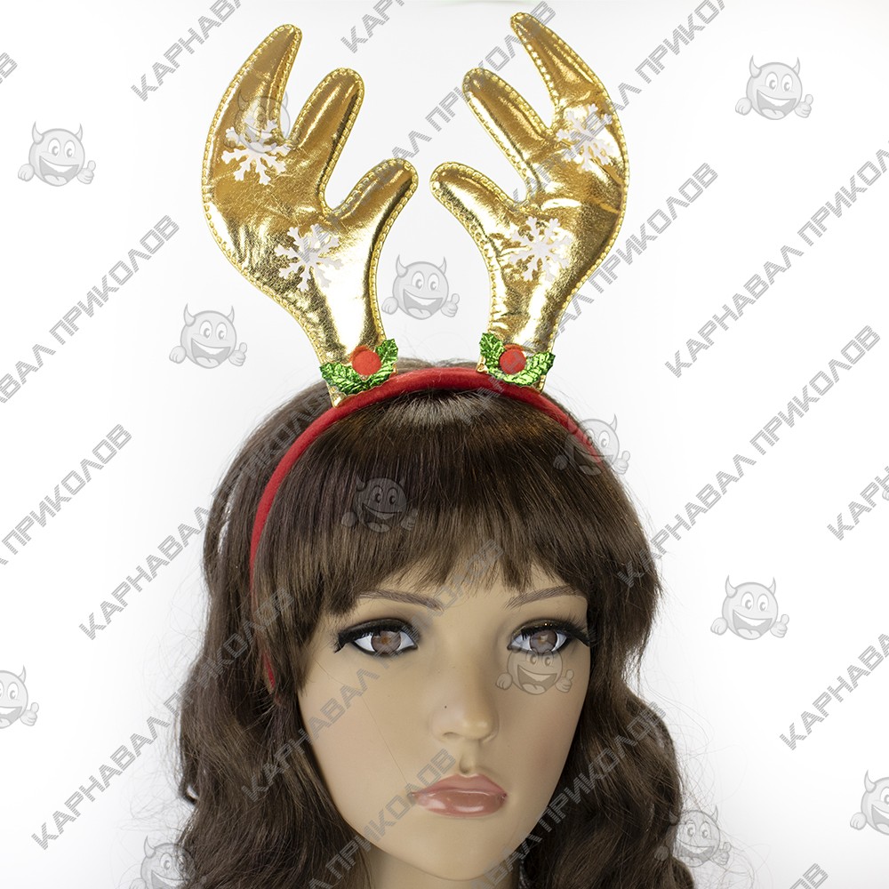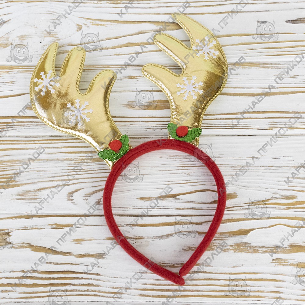 Роги Оленя на обідку різдвяні атласні (золоті)