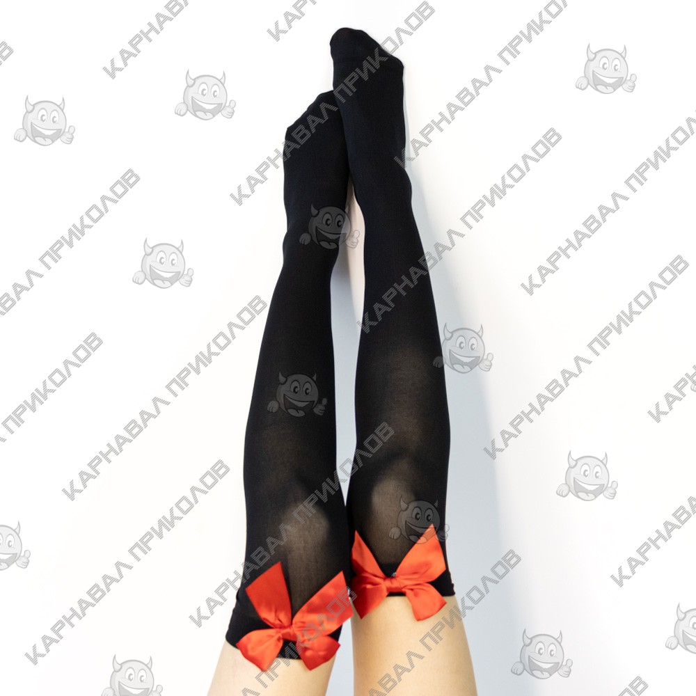 Панчохи капронові чорні з червоним бантом - значить завершити свій похмурий образ на Хелловін. Нейлонові панчохи з зображенням шнурівки з бантом ідеально підходять для створення образу на тематичне свято День мертвих або Марді Гра. Панчохи на гумці оптом та по дропшипінгу Ви можете купити в інтернет магазині Карнавал Приколів.