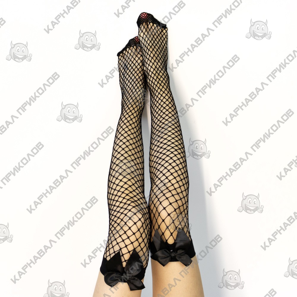 Панчохи мереживні Сітка чорна з чорним бантом - значить завершити свій похмурий образ на Хелловін. Нейлонові панчохи з зображенням шнурівки з бантом ідеально підходять для створення образу на тематичне свято День мертвих або Марді Гра. Панчохи на гумці оптом та по дропшипінгу Ви можете купити в інтернет магазині Карнавал Приколів.